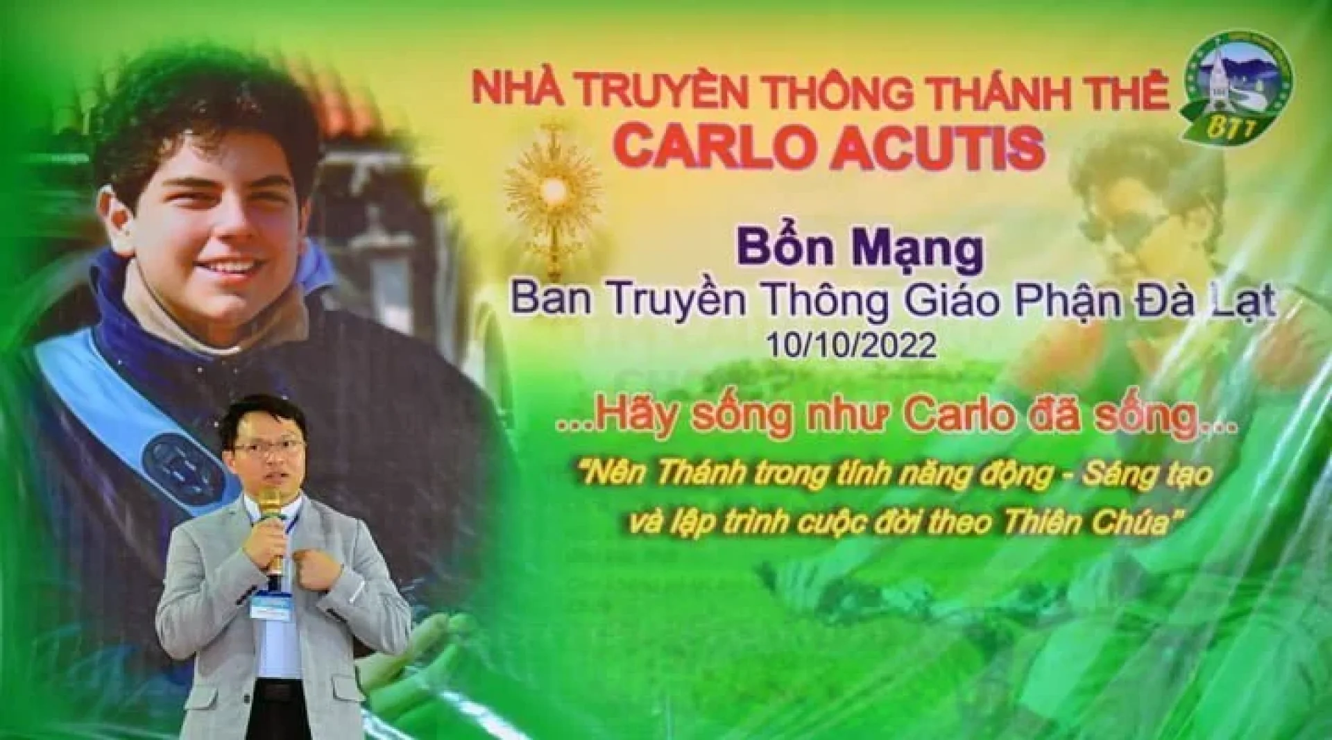 Thứ hai ngày 10/10/2022 – ngày kỷ niệm 2 năm Chân Phước Carlo Acutis được tuyên phong Chân Phước – Ban Truyền thông (BTT) Giáo phận Đà Lạt đã long trọng cử hành ngày lễ bổn mạng của mình lần đầu tiên, tại Giáo xứ Thánh Mẫu, Giáo hạt Bảo Lộc. Chương trình bắt đầu từ 8g30 khi đã quy tụ đông đủ các thành viên BTT và các cộng tác viên từ 7 giáo hạt trong giáo phận nơi khuôn viên nhà thờ Thánh Mẫu. Sau khi Cha phó BTT Giuse Trần Văn Mạnh giới thiệu các thành phần tham dự, Cha Trưởng Ban Đaminh Nguyễn Hoàng Lam đã khai mạc ngày họp mừng lễ. Bầu khí dần nóng lên với các bài hát kèm cử điệu của nhóm truyền thông Thiếu Nhi Thánh Thể giáo phận, cùng những điệu múa của các bạn trẻ đến từ các giáo xứ có anh chị em người Dân Tộc trong giáo phận. Xen vào đó là phần tìm hiểu tiểu sử và sự nghiệp của Chân Phước Carlo Acutis qua các trò chơi được thiết kế trên vi tính.