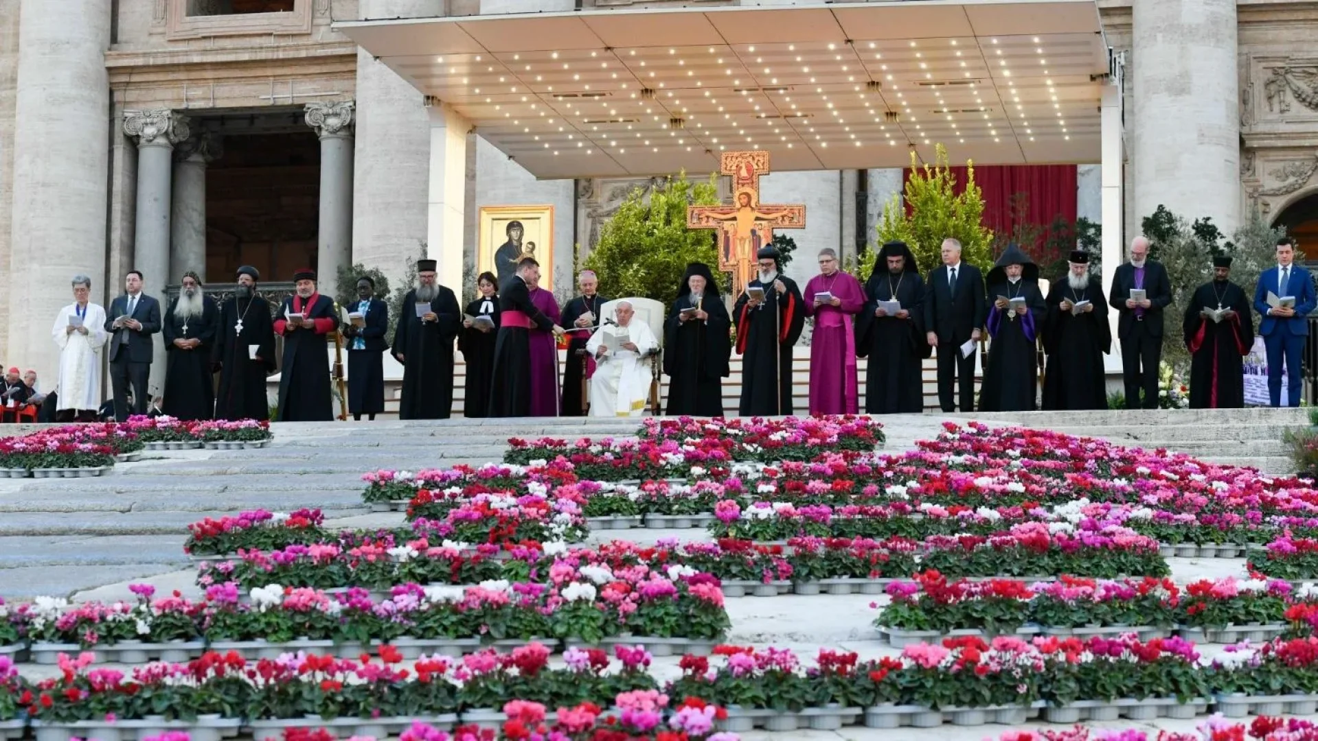 Đặc biệt Đức Thánh Cha cảm ơn cộng đoàn Taizé vì sáng kiến buổi cầu nguyện này. Ngài nói: “Tôi hết lòng chào mừng các vị đứng đầu các Giáo hội, các vị lãnh đạo và các phái đoàn của các truyền thống Kitô giáo khác nhau và tất cả anh chị em, đặc biệt là giới trẻ: cám ơn các bạn đã đến cầu nguyện cho chúng tôi và với chúng tôi, tại Rôma, trước Đại hội thường kỳ của Thượng Hội Đồng Giám Mục, vào đêm trước cuộc tĩnh tâm diễn ra ngay sau đó. “Syn–odos ”: chúng ta cùng nhau bước đi, không chỉ những người Công giáo, mà tất cả các Kitô hữu, toàn thể Dân của những người đã được rửa tội, toàn thể Dân Thiên Chúa, bởi vì “chỉ khi cùng nhau mới có thể là sự hiệp nhất của tất cả mọi người” (JA Möhler, Symbolik oder Darstellung der dogmatischen Gegensätze der Katholiken und Protestanten nach ihren öffentlichen Bekenntnisschriften , II, Köln-Olten 1961, 698).