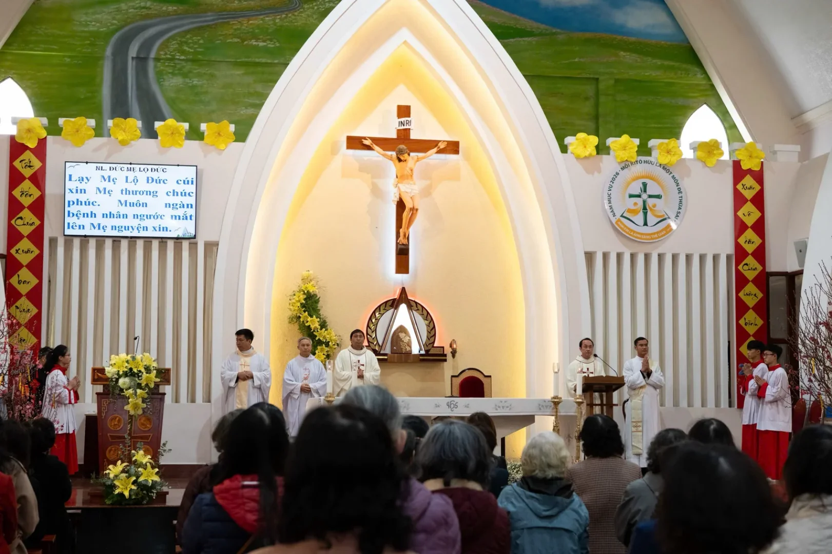 Trong tiết trời se lạnh điểm vài hạt mưa xuân của những ngày cuối năm Ất Tỵ, hòa cùng sắc hồng dịu dàng của mùa Mai Anh Đào phố núi, sáng ngày 11/02/2026, Caritas Giáo sở Thánh Tâm đã long trọng tổ chức Thánh lễ mừng kính Đức Mẹ Lộ Đức – Bổn mạng của Ban, đồng thời hiệp thông cùng Giáo hội hoàn vũ trong Ngày Quốc tế Bệnh nhân.
