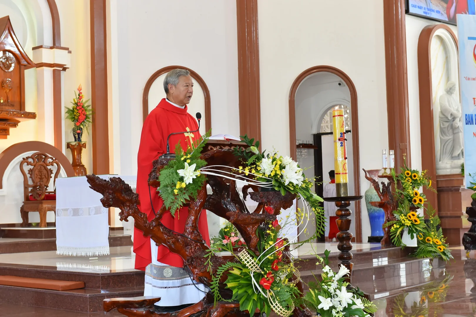 Trong bài giảng, từ đoạn Phúc Âm của Chúa nhật tuần 11 thường niên, Cha Tổng Đại diện nói về Nước Thiên Chúa với dụ ngôn “hạt giống được gieo vào ruộng đất” và “hạt cải bé xíu”. Từ đó Ngài nhắn nhủ các em được Thêm Sức: “Hạt giống Lời Chúa được gieo vào tâm hồn các con là những lời dạy dỗ của cha mẹ các con, những thói quen đạo đức, thông truyền đức tin từ gia đình. Rồi qua những bài giáo lý, những buổi tham dự phụng vụ… Lời Chúa vẫn âm thầm lớn lên trong các con. Hôm nay các con lãnh Bí tích Thêm Sức, Chúa Thánh Thần xuống dồi dào ơn trên các con, làm cho các con trở nên mạnh mẽ, làm cho các con trưởng thành trong Đức tin. Các con hãy ý thức mình là thành phần của Hội Thánh, có bổn phận xây dựng Hội Thánh. Các con là tương lai của giáo xứ, các con sẽ tiếp bước tiền nhân, tiếp tục làm phát triển Hội Thánh Chúa, sao cho mọi người nhìn vào Hội Thánh Công Giáo thấy đó chính là hiện thân của Nước Trời, là nơi họ tìm đến. Để làm được điều đó, các con cần siêng năng lãnh nhận Thánh Thể Chúa, là lương thực nuôi sống và là nguồn mạch sức mạnh cho mọi hoạt động của mình…”