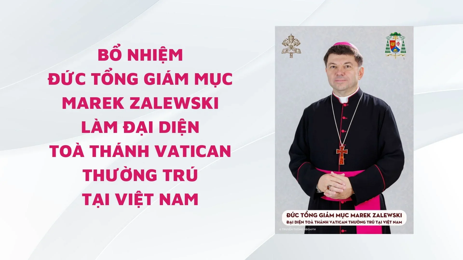 Như tin đã đưa, ngày 23/12/2023, Đức Giáo Hoàng Phan-xi-cô đã bổ nhiệm Đức Tổng Giám mục Marek Zalewski làm Đại diện Tòa thánh Vatican thường trú tại Việt Nam. Theo chương trình, ngày 31/01/2024, Đức TGM Đại diện Tòa thánh đã đến Việt Nam sau khi được bổ nhiệm.