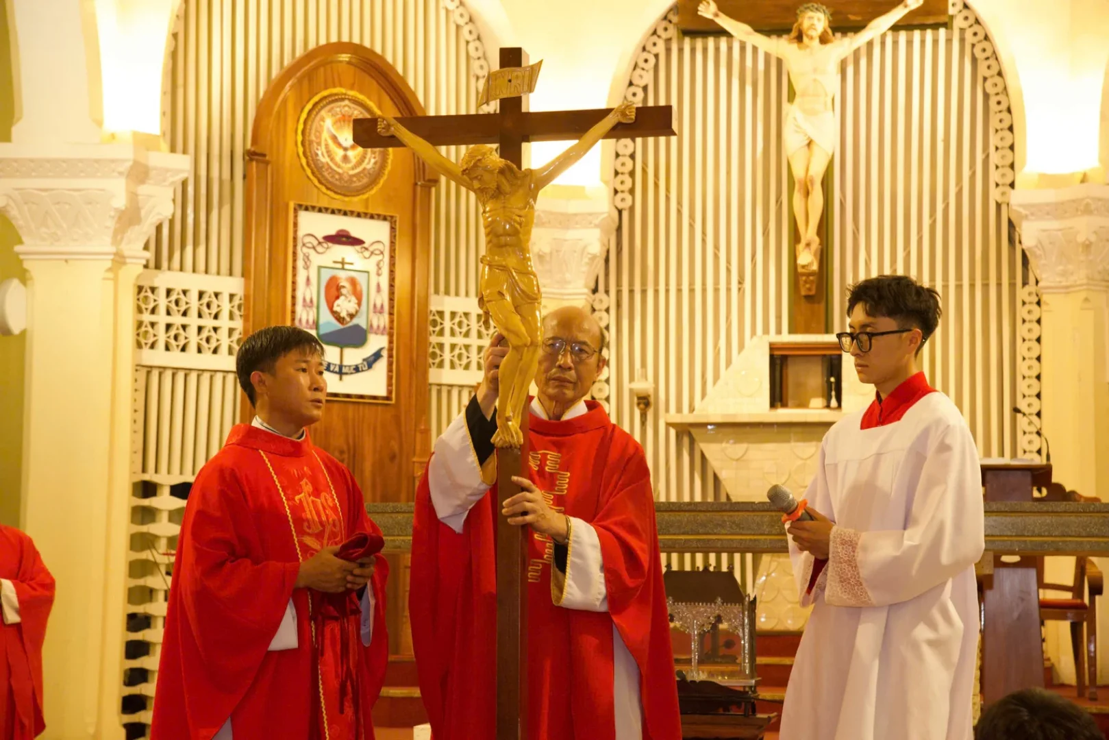 Bàn thờ trống trơn, không tiếng chuông ngân, vắng bóng những khúc ca rộn ràng. Chiều nay, toàn thể phụng vụ được bao phủ bởi một sự thinh lặng sâu thẳm – sự thinh lặng đưa mỗi người bước vào mầu nhiệm tình yêu tự hiến của Đấng Cứu Thế.