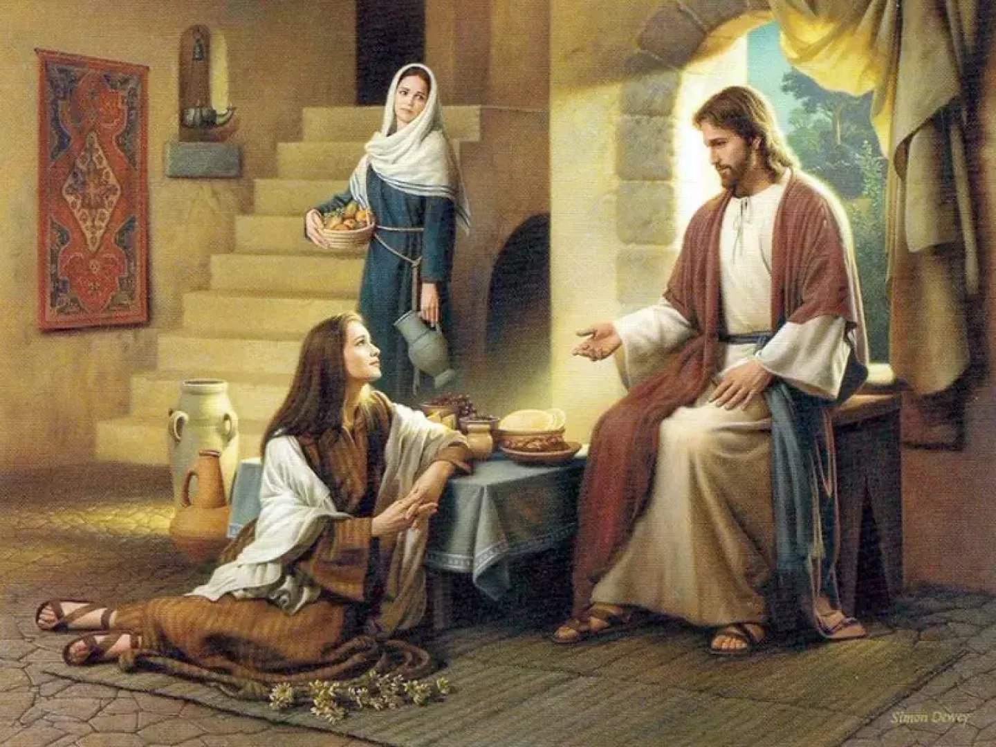 Hình ảnh Maria ngồi dưới chân Chúa để nghe Ngài giảng nói lên nhiều điều. Tư thế ngồi nghe như vậy nói lên tư cách người môn đệ. Mặc dù với Do Thái giáo thời đó, chỉ người nam mới có tư cách đón nhận giáo huấn như thế. Nhưng ở đây Chúa Giêsu đã đón nhận cả Maria. Điều đó nói lên sự bình đẳng và rộng khắp của sứ điệp Lời Chúa. Càng mạnh hơn khi nhìn vào Bài đọc 1 ta chỉ thấy người nam mới được tiếp đãi trực tiếp và trò chuyện với khách, còn ở đây chị em Mattha và Maria đã đứng ở vị thế của người nam. Vượt qua rào cản của văn hóa như vậy đủ để cho chúng ta thấy được sự tự do của Lời Chúa. Thánh ý Thiên Chúa không bị gò bó, lệ thuộc vào bất cứ một khuôn phép hay thể chế nào của con con người. Lời Chúa luôn là đèn soi dẫn cho tất cả mọi người nhận ra và tiến về miền Chân Lý.