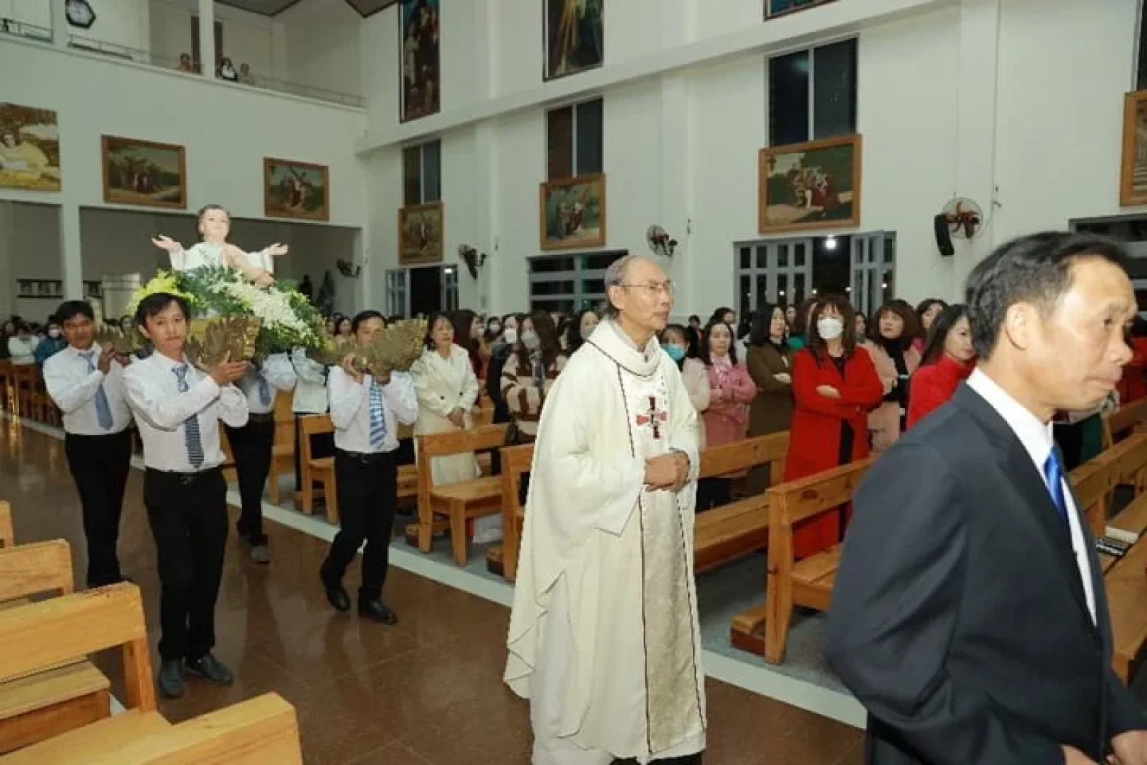 20 giờ là buổi canh thức dành cho người lớn do các đoàn thể phụ trách. Và vào lúc 21 giờ, Thánh lễ đêm do cha Chánh xứ Giuse Nguyễn Đức Trung chủ sự.