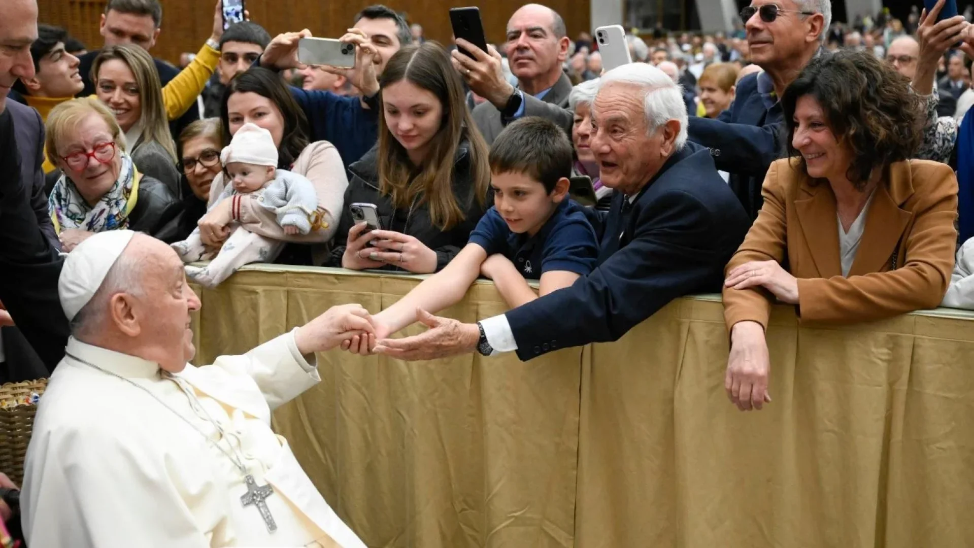 Đức Thánh Cha kết thúc bài nói chuyện: “Trên Thánh Giá, khi nhìn Đức Mẹ và môn đệ thương mến đứng bên cạnh, Chúa Giêsu nói với thân mẫu: ‘Thưa Bà, đây là con Bà’. Rồi Người nói với môn đệ: ‘Đây là mẹ của anh’ (Ga 19, 26-27). Với những lời đó, Chúa Giêsu đã giao phó cho chúng ta một phép lạ cần đạt được: yêu thương nhau như một đại gia đình”.