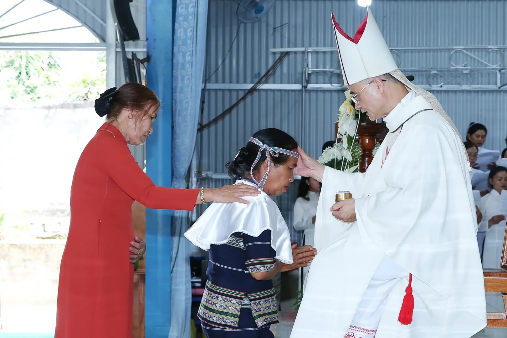 Vào lúc 9g00 thứ Bảy ngày 23/8/2025, cộng đoàn Giáo xứ Lộc Nam hân hoan vui mừng chào đón Đức Cha Đaminh, Giám mục Giáo phận Đà Lạt về cử hành Thánh lễ ban các Bí tích khai tâm Kitô giáo cho 75 anh chị em người đồng bào K’Ho sinh sống tại Lộc Nam và ban Bí tích Thêm Sức cho 62 em thiếu nhi trong giáo xứ. Đồng tế với Đức Cha có Cha quản xứ và phó xứ Lộc Nam, Cha trưởng nghi Giáo hạt Bảo Lộc, quý Cha đến từ Giáo xứ Đại Lộc, Giáo xứ Tân Lạc; quý Cha dòng Hiến Sĩ Đức Mẹ Vô Nhiễm, dòng Tông Đồ Cầu Nguyện Cho Ơn Gọi, dòng Đắc Lộ và quý Cha khách. Hiệp thông trong Thánh lễ còn có sự hiện diện của quý Sơ Đan Viện Nữ Biển Đức Lộc Nam, quý Sơ trong Hiệp Hội Chứng Nhân Chúa Kitô, quý Thầy Chủng viện Minh Hòa Đà Lạt, quý khách và cộng đoàn dân Chúa Giáo xứ Lộc Nam.