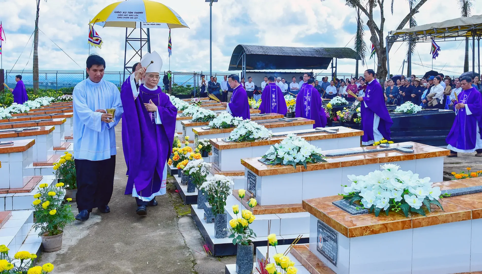 Vào lúc 8g30 sáng thứ hai ngày 03/11/2025, Đức Cha Đaminh Giám mục Giáo phận đã cử hành Thánh lễ cầu cho các tín hữu đã qua đời tại Nghĩa trang Linh mục Giáo phận Đà Lạt. Đồng tế với Đức Cha có Cha Đại diện Giám mục đặc trách người Dân tộc, Cha Quản hạt Bảo Lộc và quí Cha trong giáo phận. Khuôn viên đất thánh đang được chỉnh trang, với lễ đài và bàn thờ mới, hôm nay đón tiếp rất đông Tu sĩ nam nữ và bà con giáo dân trong giáo phận hiệp dâng Thánh lễ cầu cho các tín hữu, cách riêng là các Linh mục và Tu sĩ đang an nghỉ nơi đây.