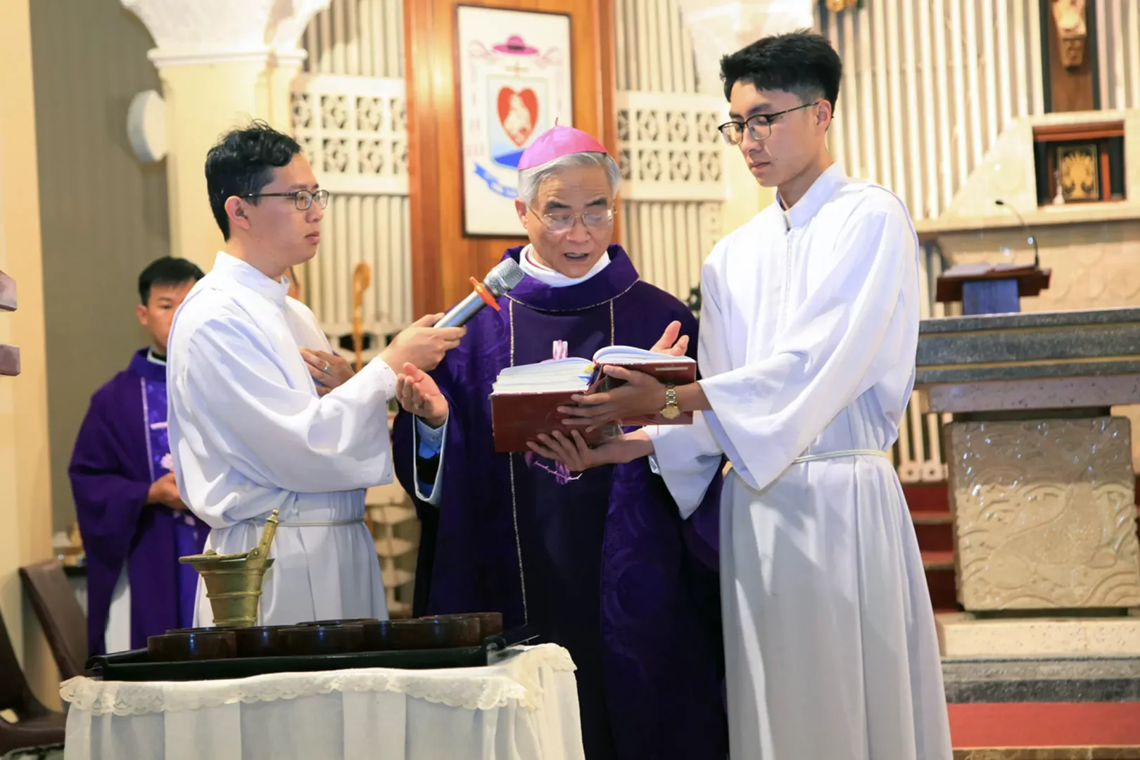 Cùng với Hội Thánh bước vào Mùa chay tịnh sám hối và làm hoà với Thiên Chúa, lúc 5 giờ 15 sáng thứ tư 5/3/2025 tại Nhà thờ Chính Toà Đà Lạt, Đức cha Đaminh Nguyễn Văn Mạnh đã long trọng cử hành Lễ Tro khai mạc Mùa Chay Thánh 2025. Đồng tế với ngài có Cha Đaminh Nguyễn Mạnh Sơn – Quản lý Giáo phận, Cha Quản hạt Phaolô Phạm Công Phương và Cha phó Giuse Lê Vũ Thành Trung. Tham dự thánh lễ có sự hiện diện đông đảo của cộng đoàn Dân Chúa Giáo xứ Chính Tòa.