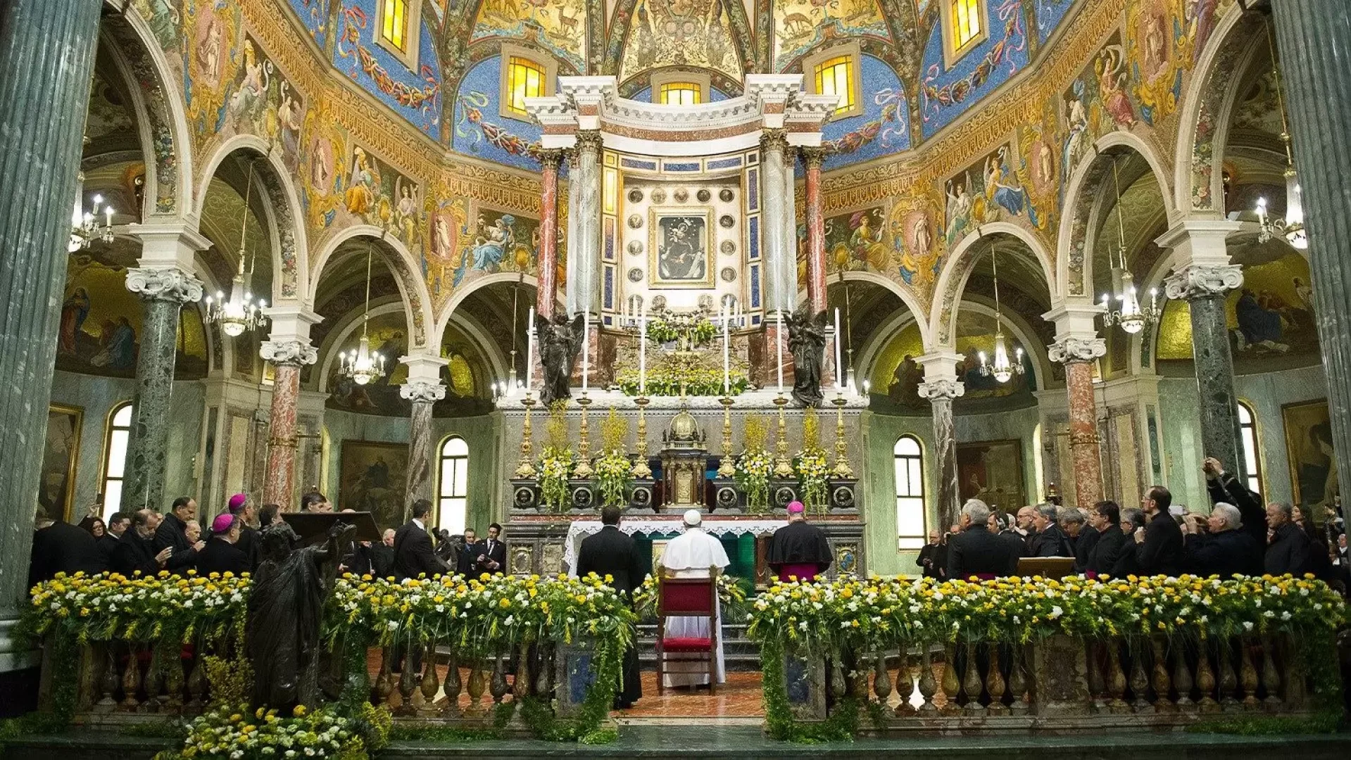 Ngài nhắc lại lịch sử của bức ảnh, hoạ lại cảnh Đức Mẹ ngồi trên ngai toà với Chúa Giêsu trong tay đang trao chuỗi Mân Côi cho Thánh Catherine thành Siena và Thánh Đa Minh. Bức ảnh đã được Bartolo Longo đưa đến đó vào ngày 13/11/1875, nhằm truyền bá lòng sùng kính kinh Mân Côi, sau khi, một ngày kia nghe tận sâu thẳm tâm hồn một tiếng nói “Nếu con tìm kiếm ơn cứu độ, hãy truyền bá kinh Mân Côi”.