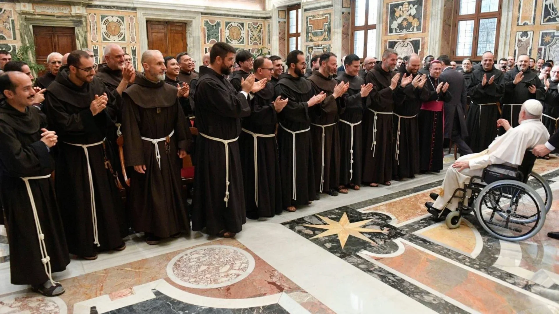 Đức Thánh Cha Phanxicô gặp các tu sĩ Phanxicô của tu viện nơi Thánh Phanxicô nhận các dấu thánh