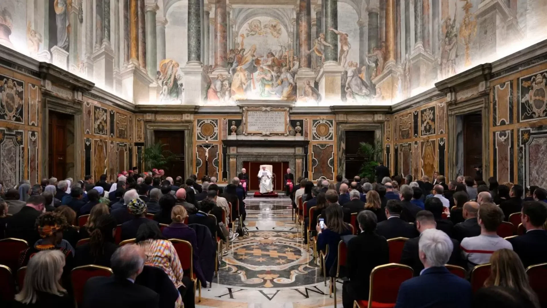 Trong bài diễn văn trước khoảng 300 người hiện diện tại sảnh Clemente, trích bài đọc thứ nhất của phụng vụ thứ Năm tuần 30 thường niên, trong đó thánh Phaolô khích lệ các tín hữu Êphêsô: “Vậy anh chị em hãy đứng vững: lưng thắt đai là chân lý, mình mặc áo giáp là sự công chính, chân đi giày là lòng hăng say loan báo tin mừng bình an” (Ep, 6, 14-15), Đức Thánh Cha cho rằng đây có thể là hình ảnh của nhà truyền thông tốt.