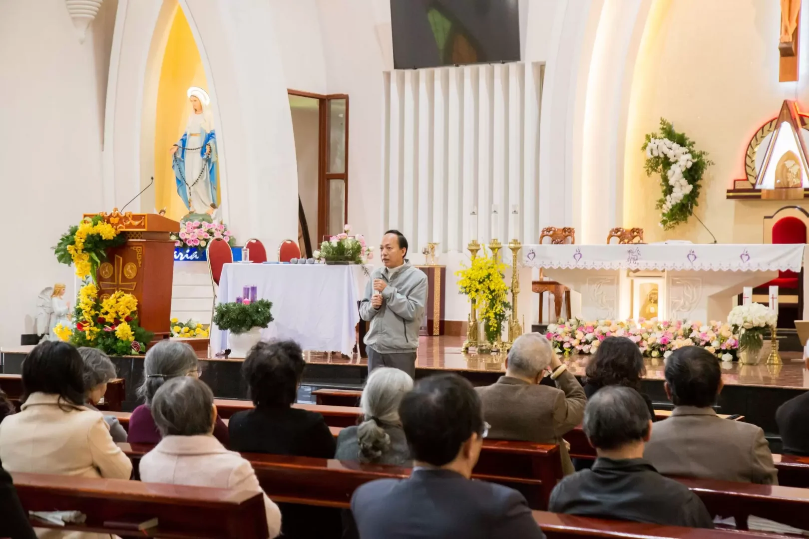 Cám ơn Cha tân Giáo sở Thánh Tâm đã chuẩn bị mọi việc liên quan, ca đoàn hát lễ để thánh lễ diễn ra được sốt sắng, trang nghiêm. Cám ơn tất cả thành viên hội, nhóm Tông đồ Giáo dân đã tụ hội về đây nhân ngày họp mặt này. Và xin dâng quý Cha bó hoa tươi nhân ngày Cha Quản hạt kỷ niệm 26 năm Linh mục và mừng lễ Bổn mạng Cha Giám tỉnh Tu hội Vinh Sơn.