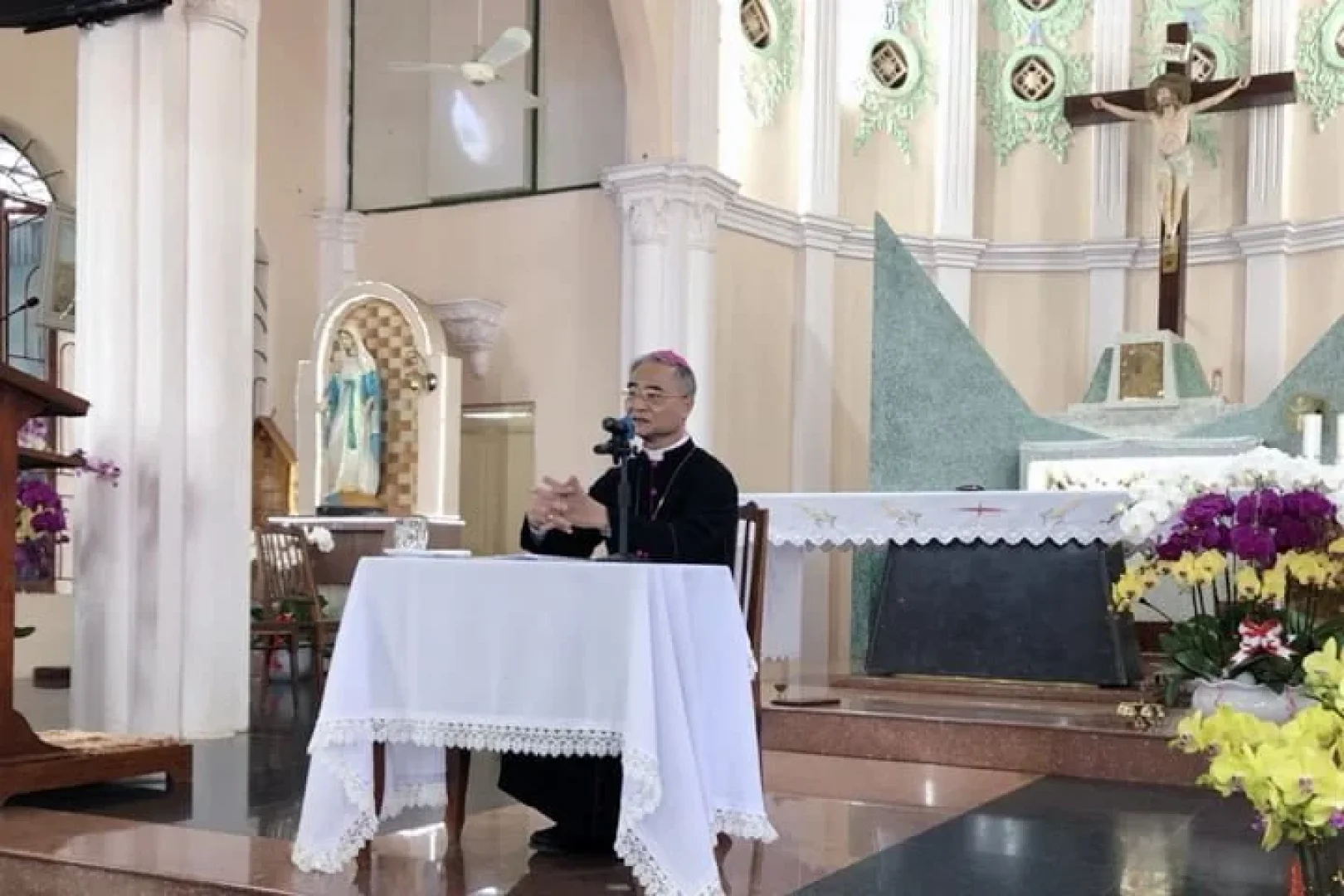 Kết thúc giờ chầu, Cha Quản hạt Di Linh chúc tết Đức cha. Nhân dịp này, Đức cha Đaminh đã chia sẻ cho mọi người biết thông tin Giáo Hội về hiệp hành, tình hình của Giáo phận trong năm vừa qua cùng với những định hướng trong năm mới.