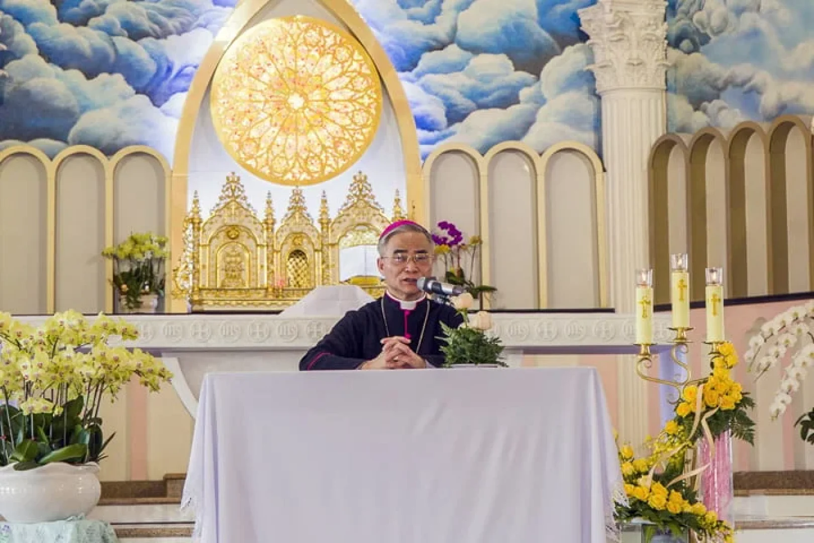 Ngỏ lời với cộng đoàn, Đức cha cám ơn và chúc mừng năm mới quý Cha và mọi người. Nhân dịp gặp mặt, Đức cha đã chia sẻ về tiến trình hiệp hành trong Giáo hội, những thông tin trong Giáo phận năm 2022 và định hướng cho năm 2023. Cách riêng Đức cha hướng mọi người đến ngày Giáo phận kỷ niệm 100 năm truyền giáo (1927- 2027).
