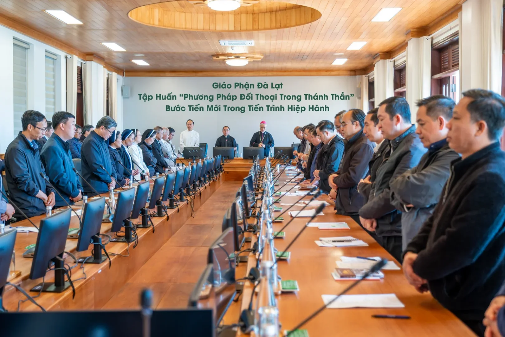 Sáng thứ Ba, ngày 17/03/2026, tại Tòa Giám mục Đà Lạt, Giáo phận đã tổ chức thành công chương trình tập huấn chuyên đề “Phương pháp đối thoại trong Thánh Thần”. Buổi tập huấn đã quy tụ 57 tham dự viên gồm quý cha quản hạt, quý cha đại diện các giáo hạt, quý cha Đại Chủng viện Minh Hòa, cùng quý tu sĩ đại diện các hội dòng và tu hội trong toàn Giáo phận.