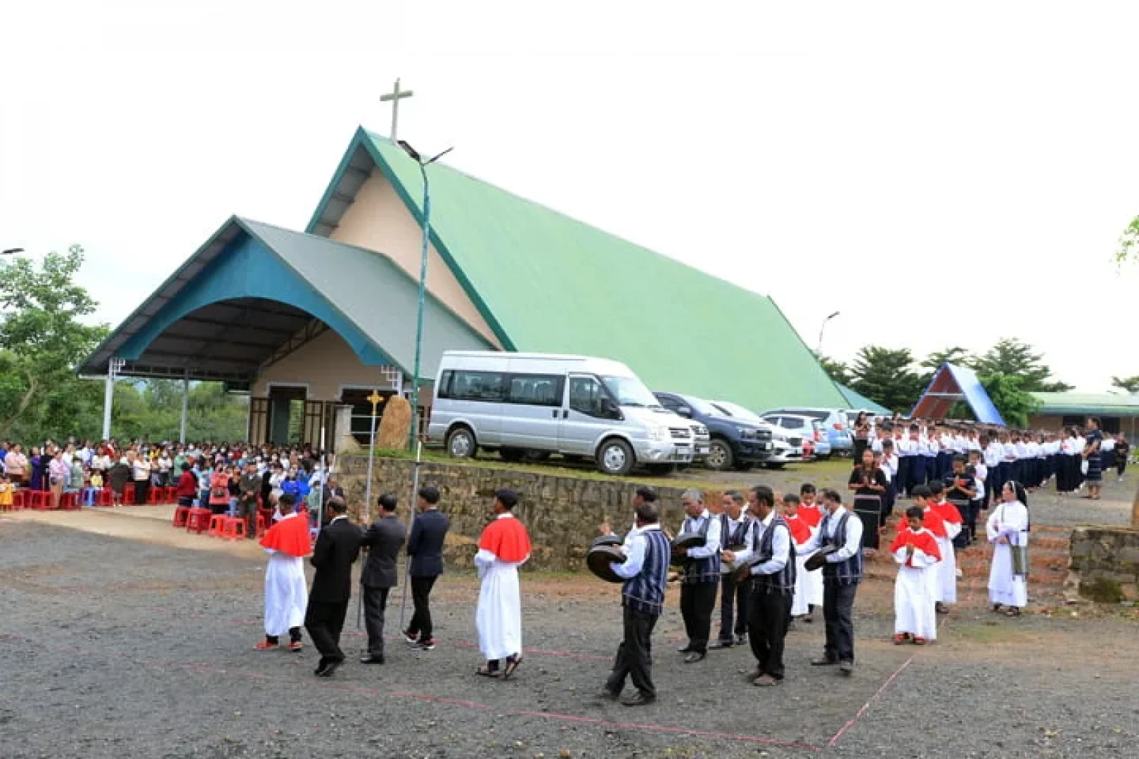 Cha Tổng Đại Diện chủ tế Thánh lễ long trọng này cùng với Cha Quản nhiệm Gioan K’Brel và Cha Phó Gioan Baotixita Nguyễn Quốc Dũng. Cha Tổng đã chia sẻ niềm vui đó với cộng đoàn và nhắc đến sự bảo trợ của Đức Maria đối với Giáo sở Đăng Srôn trong nhiều năm qua, để ngày nay Đăng Srôn có được những niềm vui lớn lao này.