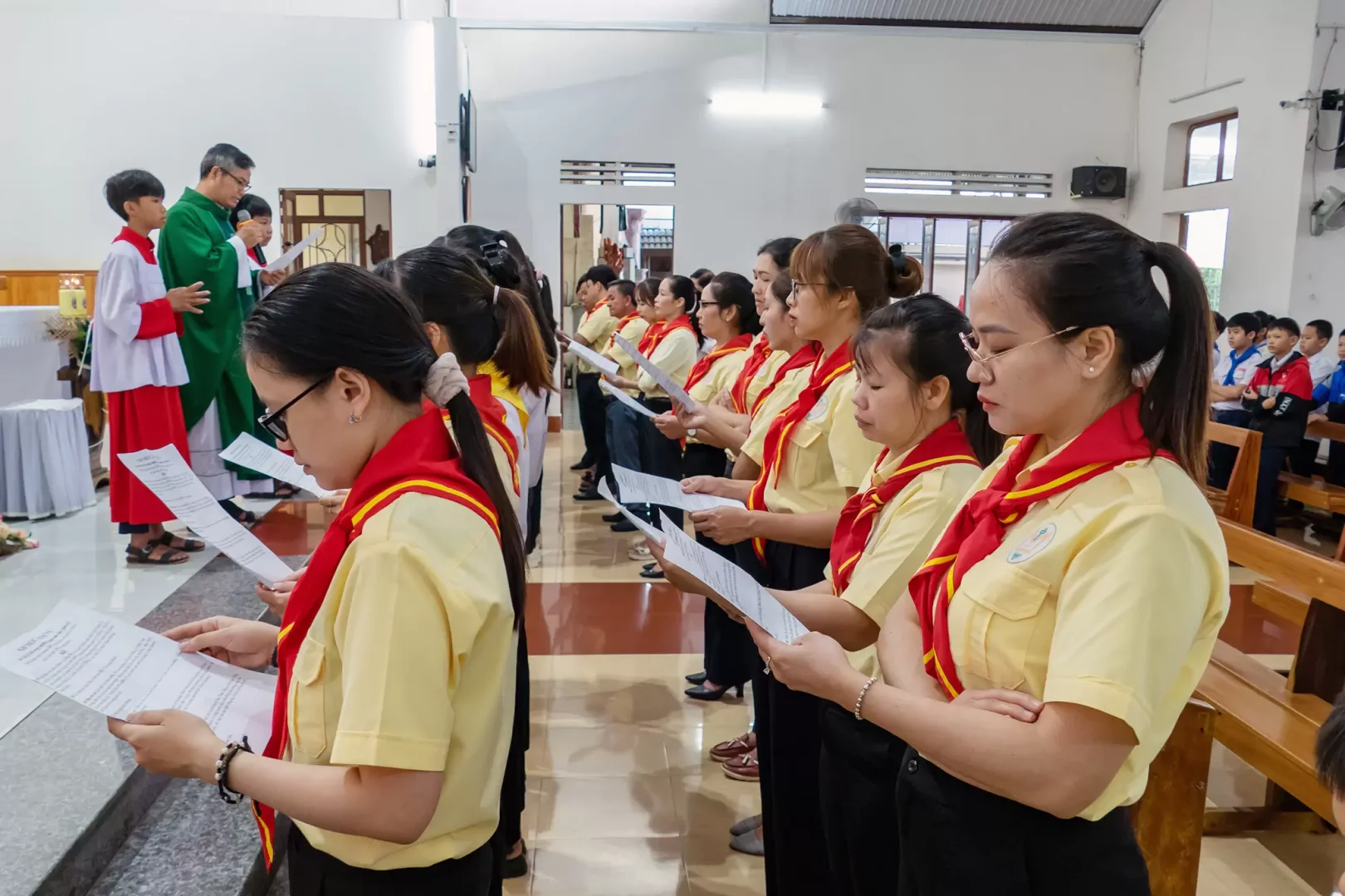 Cuối Thánh lễ, Cha quản nhiệm đã giới thiệu đến Thiếu nhi và cộng đoàn dân Chúa hiện diện về các anh chị GLV của giáo sở đã tuyên hứa trong ngày khai giảng này. Chính nhờ vào tinh thần hy sinh phục vụ Hội thánh do Chúa trao ban cho các anh chị qua việc trao sứ vụ từ Cha quản nhiệm, các anh chị sẽ là người trực tiếp dạy dỗ các em trong các buổi học giáo lý, giúp cho các em hiểu hơn về đời sống Đức tin.