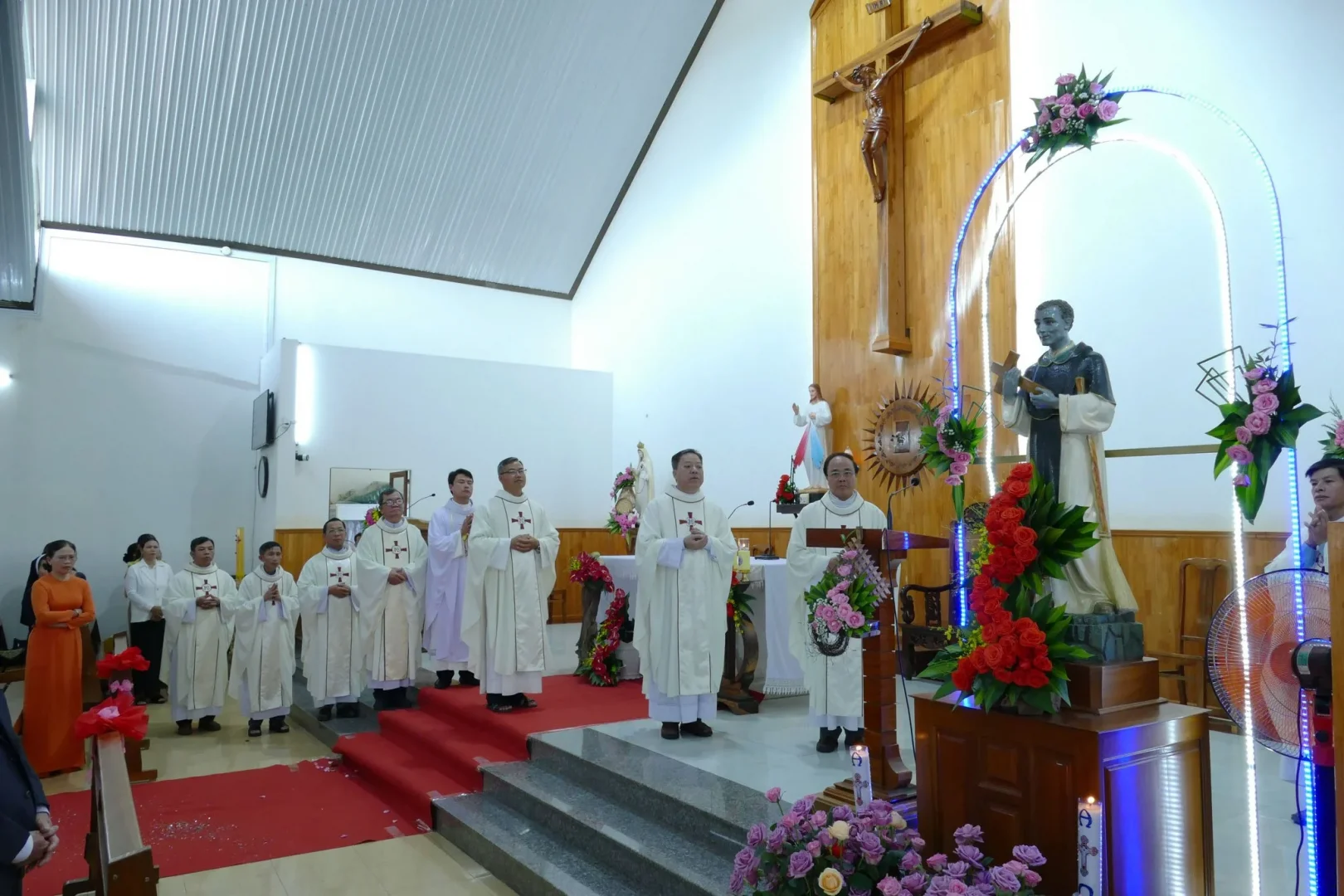 Sáng thứ 6 ngày 03/11/2023 tại nhà thờ Giáo sở Martinô, Cha Quản nhiệm Đaminh Vũ Hàn Giang cùng quý Cha trong giáo hạt Bảo Lộc đã long trọng dâng Thánh lễ mừng kính Thánh Martinô Pores – bổn mạng Giáo sở. Tham dự Thánh lễ có quý Sơ, hội đồng các giáo xứ bạn, quý ân nhân, khách hành hương xa gần và đông đảo cộng đoàn Dân Chúa trong giáo sở.