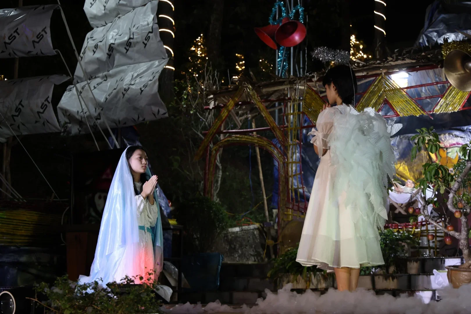 “Niềm vui Giáng Sinh biến đổi con người chúng ta”, đó là chủ đề Lễ Giáng Sinh 2025 của Giáo xứ An Bình, Giáo hạt Đà Lạt, với Diễn nguyện Giáng Sinh lúc 19g00 ngày 24/12/2025. Diễn nguyện tái hiện lịch sử cứu độ của Thiên Chúa, từ lúc ông Adam và bà Eva bị cám dỗ, đến khi Chúa Giêsu sinh ra nơi hang đá bò lừa tại Bêlem. Những hình ảnh này đã từng bước giúp dẫn cộng đoàn tham dự cảm nhận mầu nhiệm Ngôi Hai giáng trần để sốt sắng bước vào Thánh lễ Vọng Giáng Sinh với tình yêu Thiên Chúa chan hoà khắp đất trời. Kiệu Chúa Hài Đồng nổi bật trên lễ đài trong niềm hân hoan khôn tả.