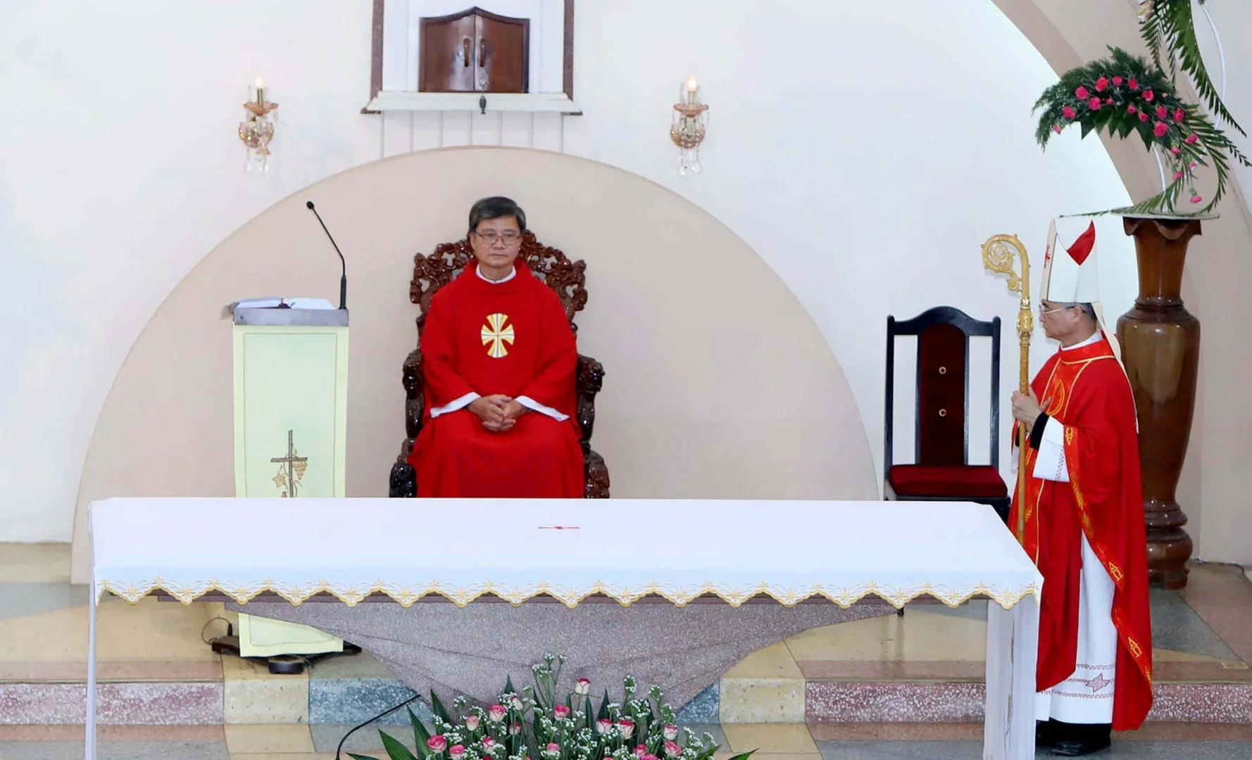 Thánh lễ tạ ơn và nghi thức nhậm chức Quản xứ do Đức Cha Đaminh Nguyễn Văn Mạnh – Giám Mục Giáo Phận Đà Lạt chủ tế, cùng với sự hiện diện hiệp thông của cha Gioan Bossco Hoàng văn Chính, Tổng đại diện Giáo Phận Đà Lạt, quý cha Quản hạt, quý cha trong và ngoài Giáo hạt, quý tu sĩ, quý chức và cộng đoàn dân chúa Giáo hạt Bảo Lộc.