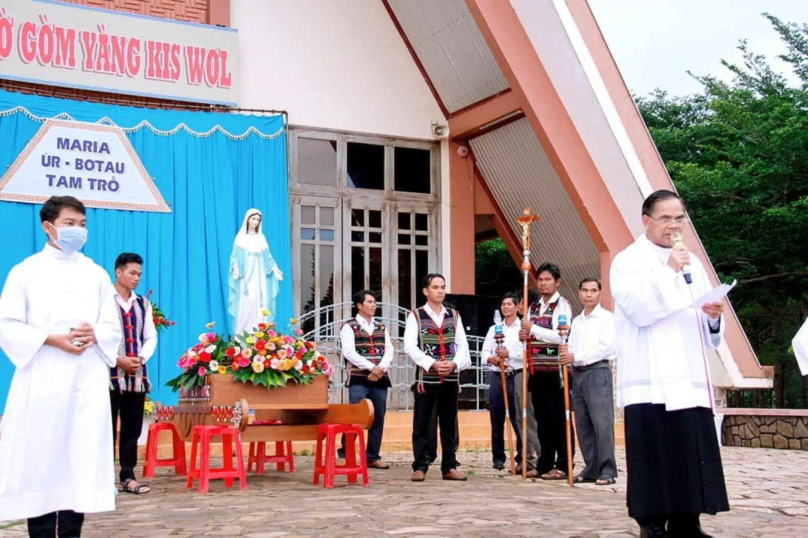 Vào lúc 17 giờ 30’ ngày 28 tháng 05 năm 2023, Cha Phêrô K’Cheoh Quản xứ Giáo xứ B’Sumrăc đã chủ sự cuộc rước kiệu và dâng hoa bế mạc tháng hoa dâng kính Đức Mẹ.