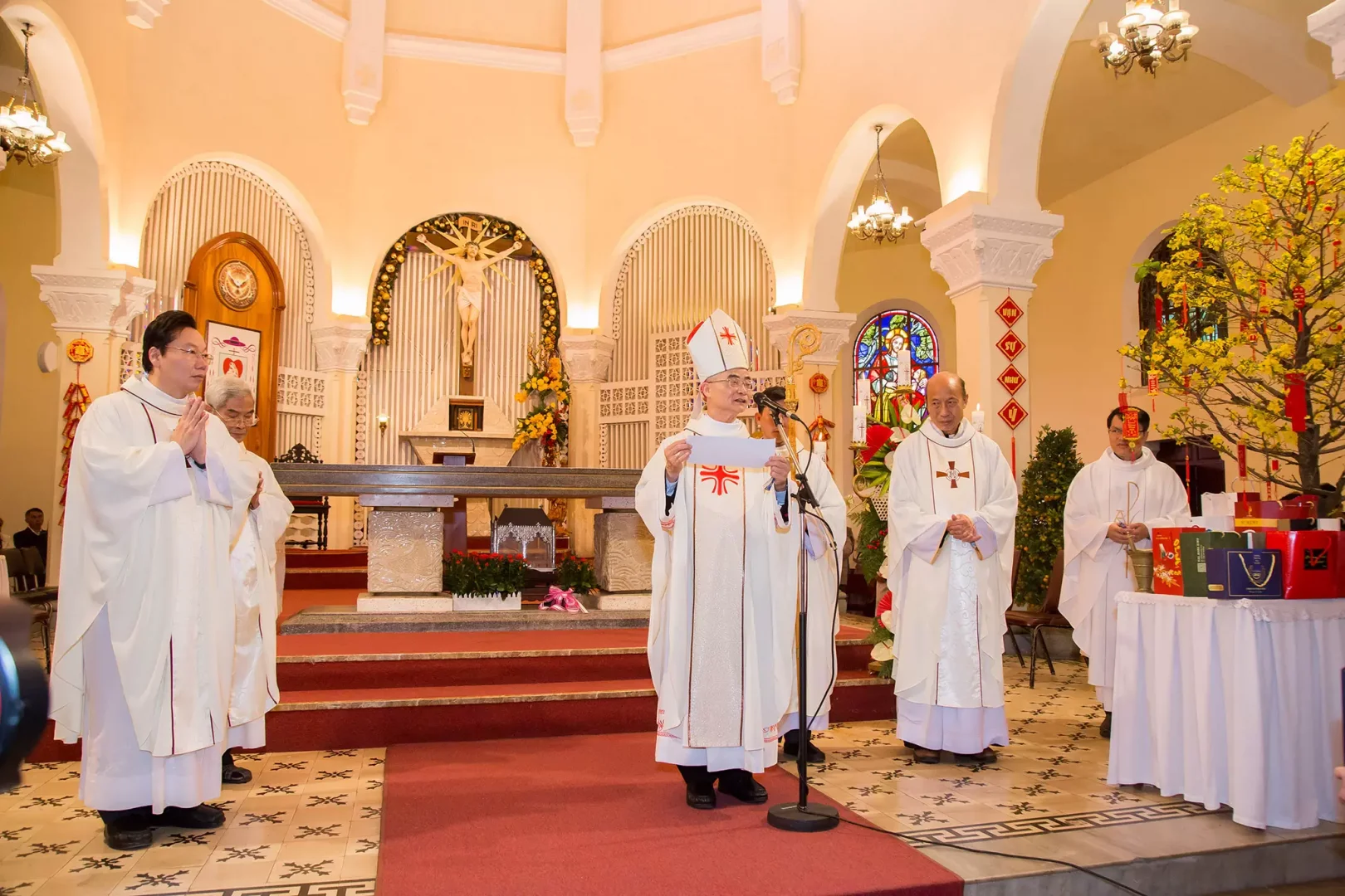 Thay mặt cho toàn thể cộng đoàn, Ông chủ tịch Hội đồng Giáo xứ chúc tết Đức Cha, Cha quản hạt Phaolô, quý Cha và Tu sĩ nam nữ: kính dâng lên Đức Cha lời chúc an khang thịnh vượng và nhiều sức khoẻ để đảm đương sứ vụ cao quý trên con đường truyền giáo không ít khó khăn, nhọc nhằn. Ông Đại diện cũng gởi lời chúc tết đến các quý chức, các ban ngành và toàn thể giáo dân trong giáo xứ một năm mới nhiều sức khỏe, an vui trong Chúa.