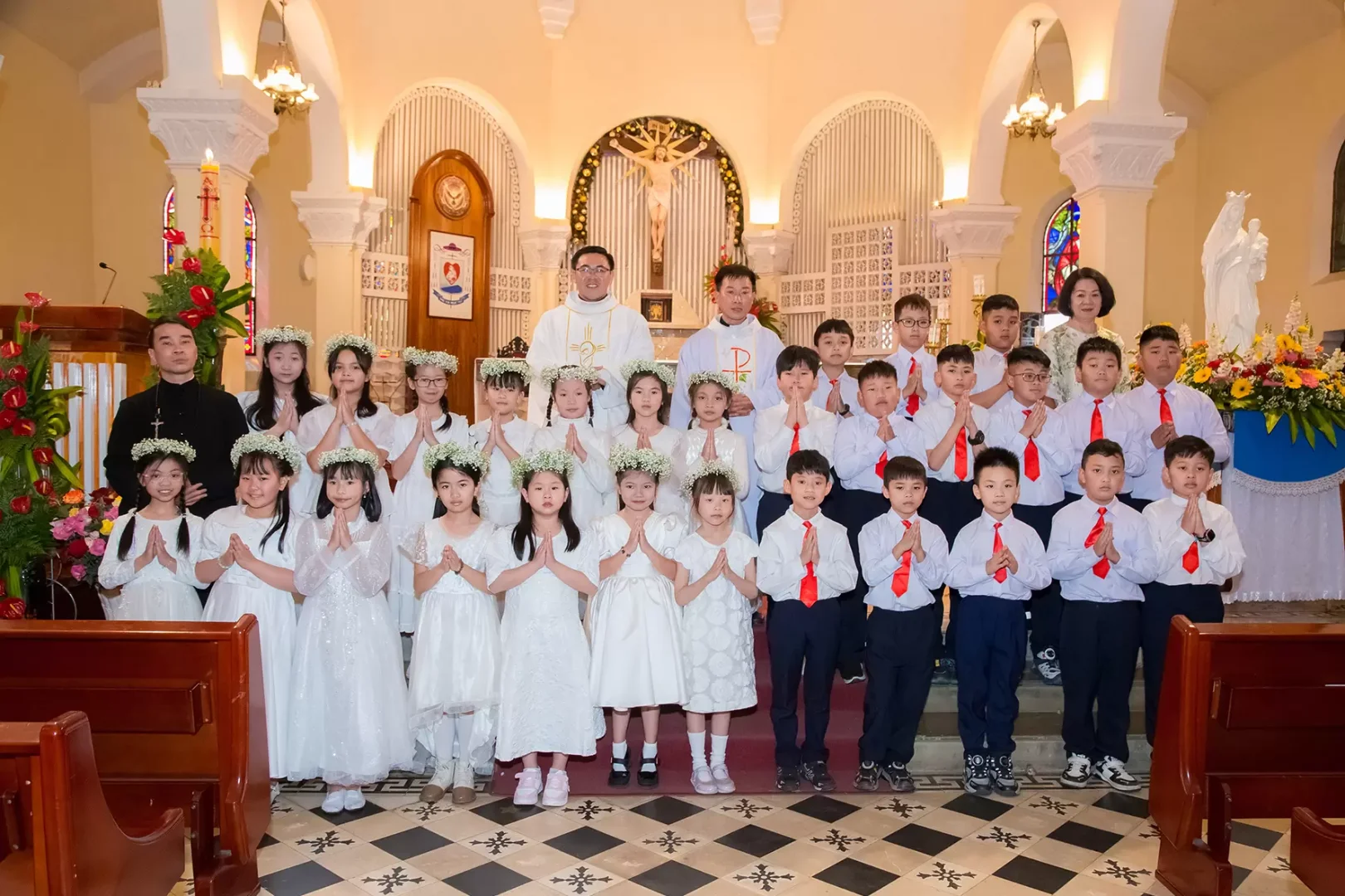 Sáng Chúa nhật 04/5/2025, từ rất sớm, khuôn viên nhà thờ Chính Tòa đã nhộn nhịp không khí của ngày đại lễ, khi 125 thiếu nhi được rước lễ lần đầu tiên trong đời.