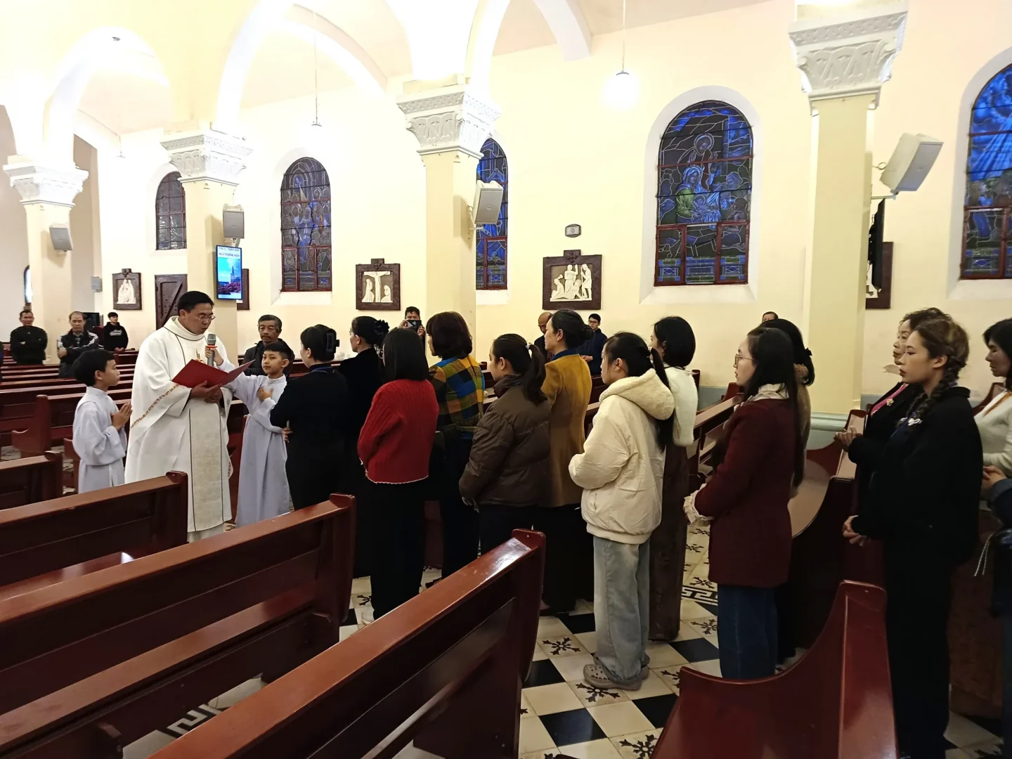 Sau đó, đoàn người tiến vào Thánh đường để tham dự Thánh lễ.