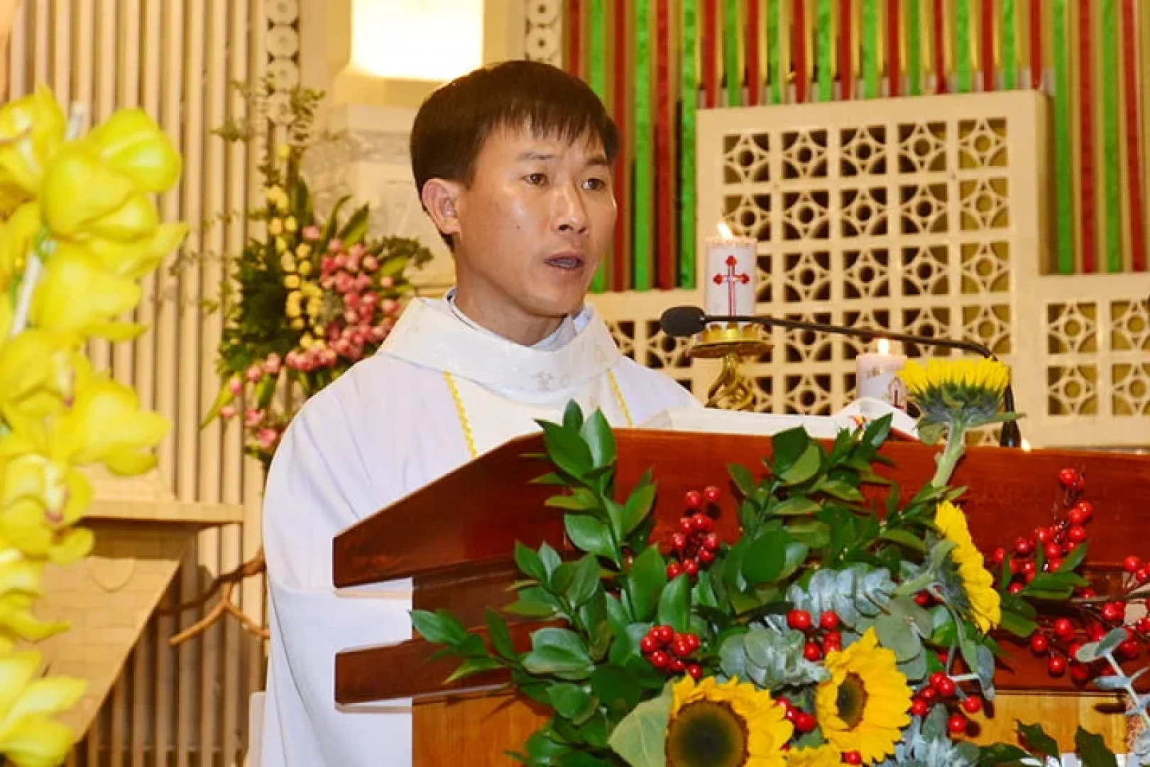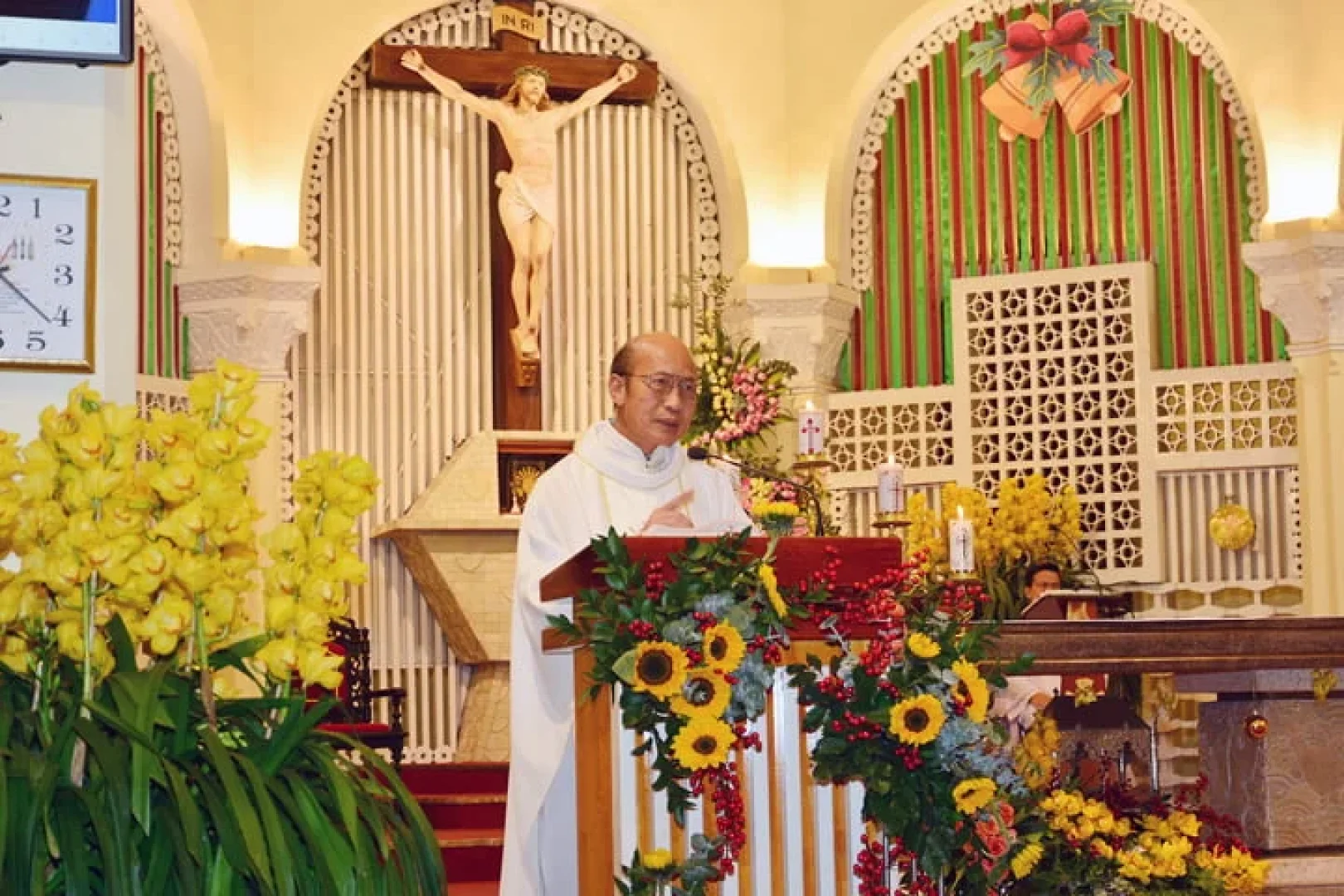 Kết thúc Thánh lễ , Cha Quản xứ Phaolô gửi lời cảm ơn đến mọi thành phần dân Chúa đã góp công , góp của làm cho đại lễ Giáng sinh được tốt đẹp .