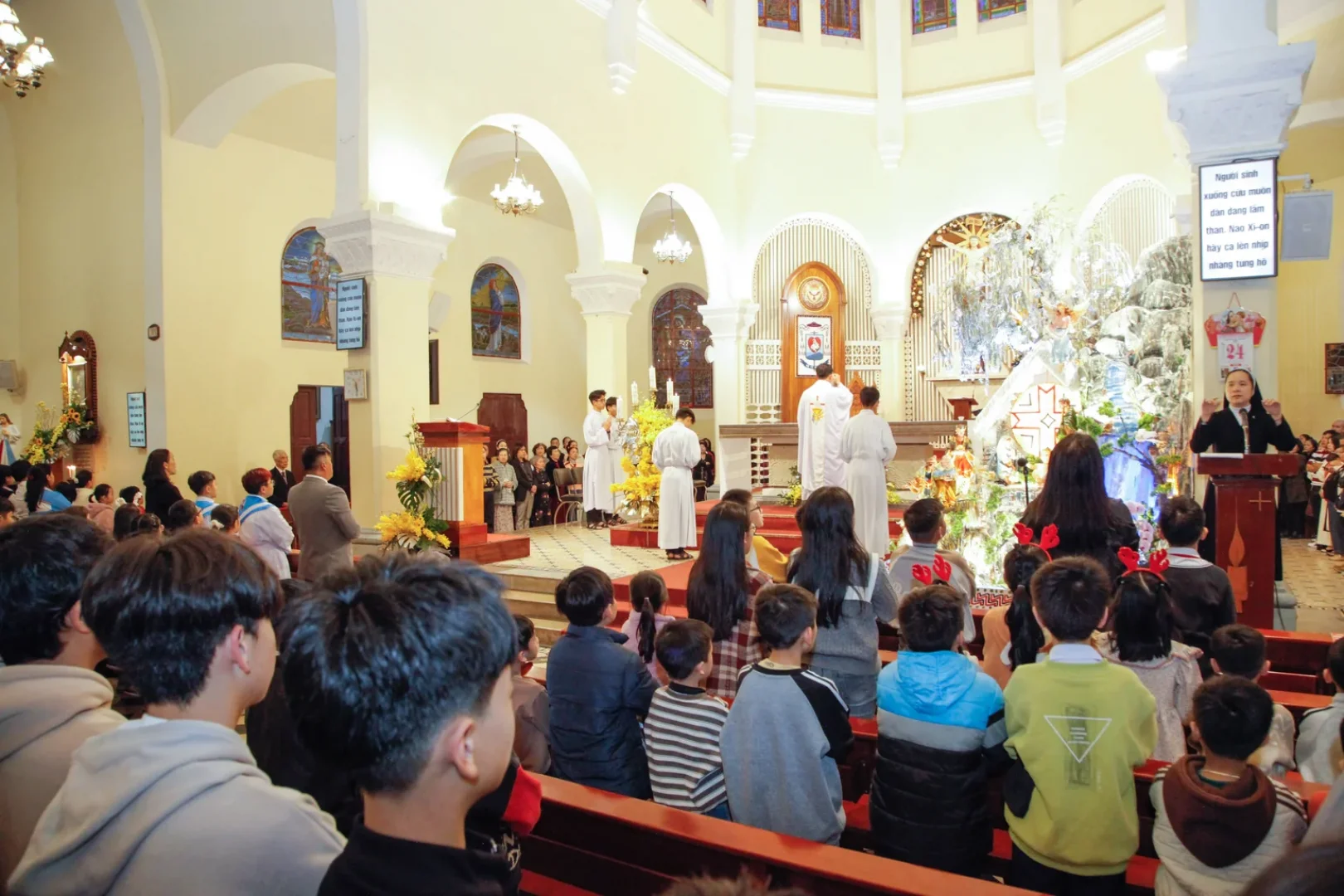 Giữa tiết trời se lạnh của mùa đông, dòng người đông đảo quy tụ về Nhà thờ Chính Tòa để mừng kính Con Thiên Chúa giáng thế làm người. Lúc 17 giờ 30 phút, ngày 24/12/2025, tại nhà thờ Chính Tòa Đà Lạt, Cha phó Giuse Lê Vũ Thành Trung đã long trọng cử hành Thánh lễ Vọng Giáng Sinh dành riêng cho các em thiếu nhi và những người cao tuổi.
