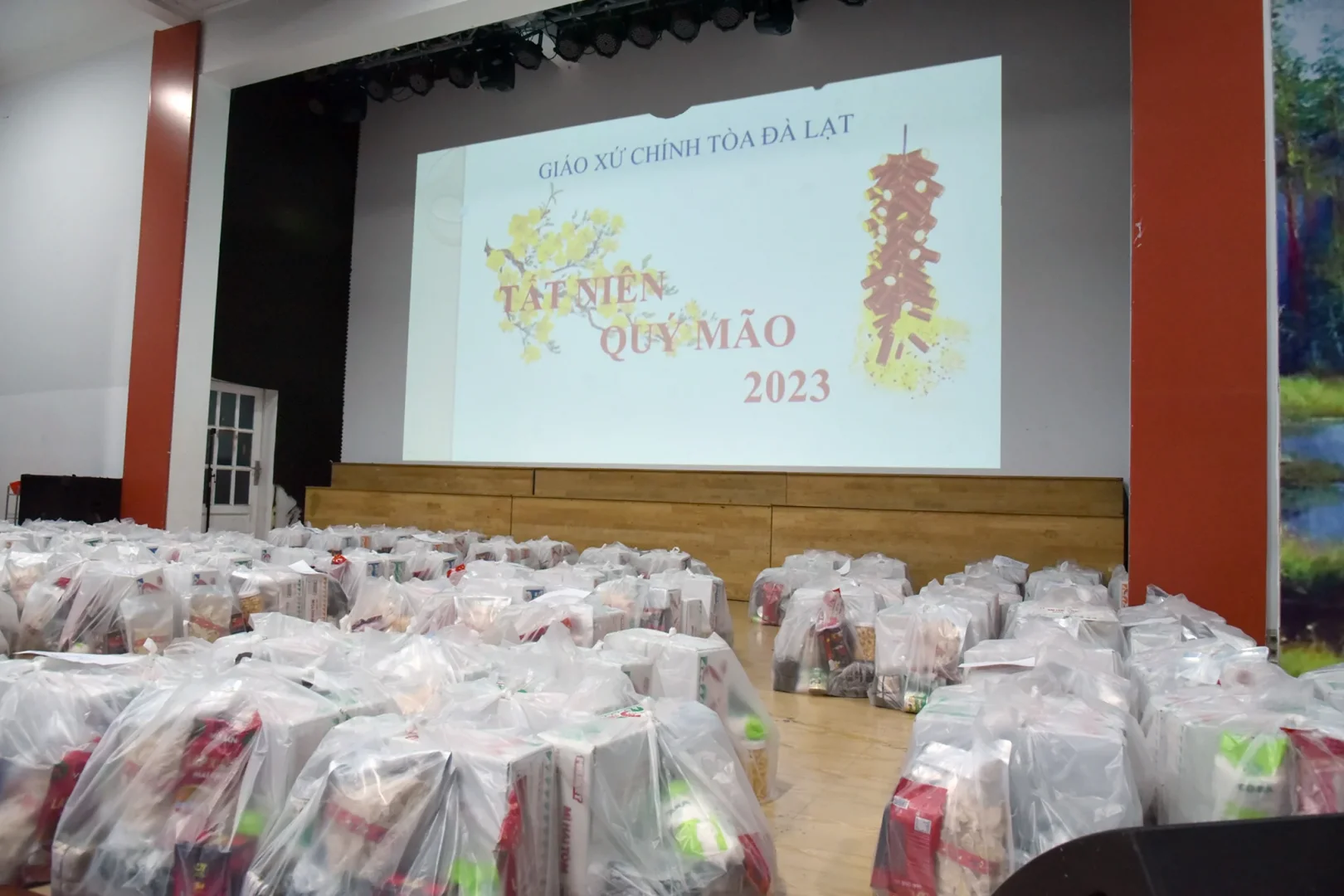 Tiếp nối truyền thống tốt đẹp được duy trì trong nhiều năm qua, chiều thứ ba ngày 30/01/2024, lúc 18h00, tại Hội trường nhà Mục vụ, Giáo xứ Chính Tòa tổ chức tiệc mừng Tất niên và trao quà Tết Giáp Thìn 2024 cho anh chị em có hoàn cảnh khó khăn được Giáo xứ góp phần bảo trợ. Những anh chị em này cư trú và mưu sinh trong địa bàn thành phố Đà Lạt và các vùng phụ cận.