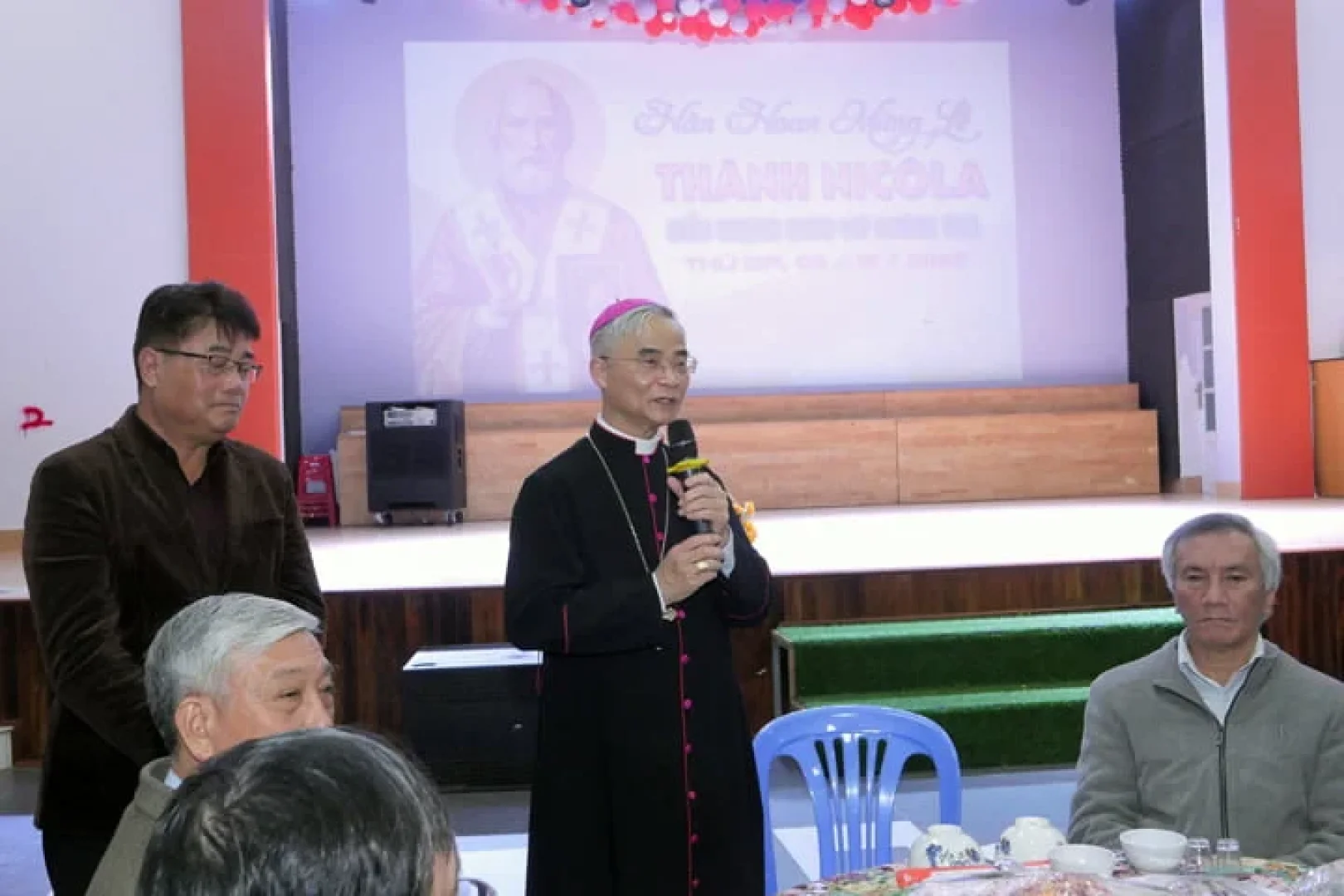 Sau thánh lễ có bữa cơm thân mật gắn kết các thành phần dân Chúa, thể hiện bầu khí ấm áp thân tình của một đại gia đình – nơi có vị Cha chung cùng đoàn con quây quần bên nhau.