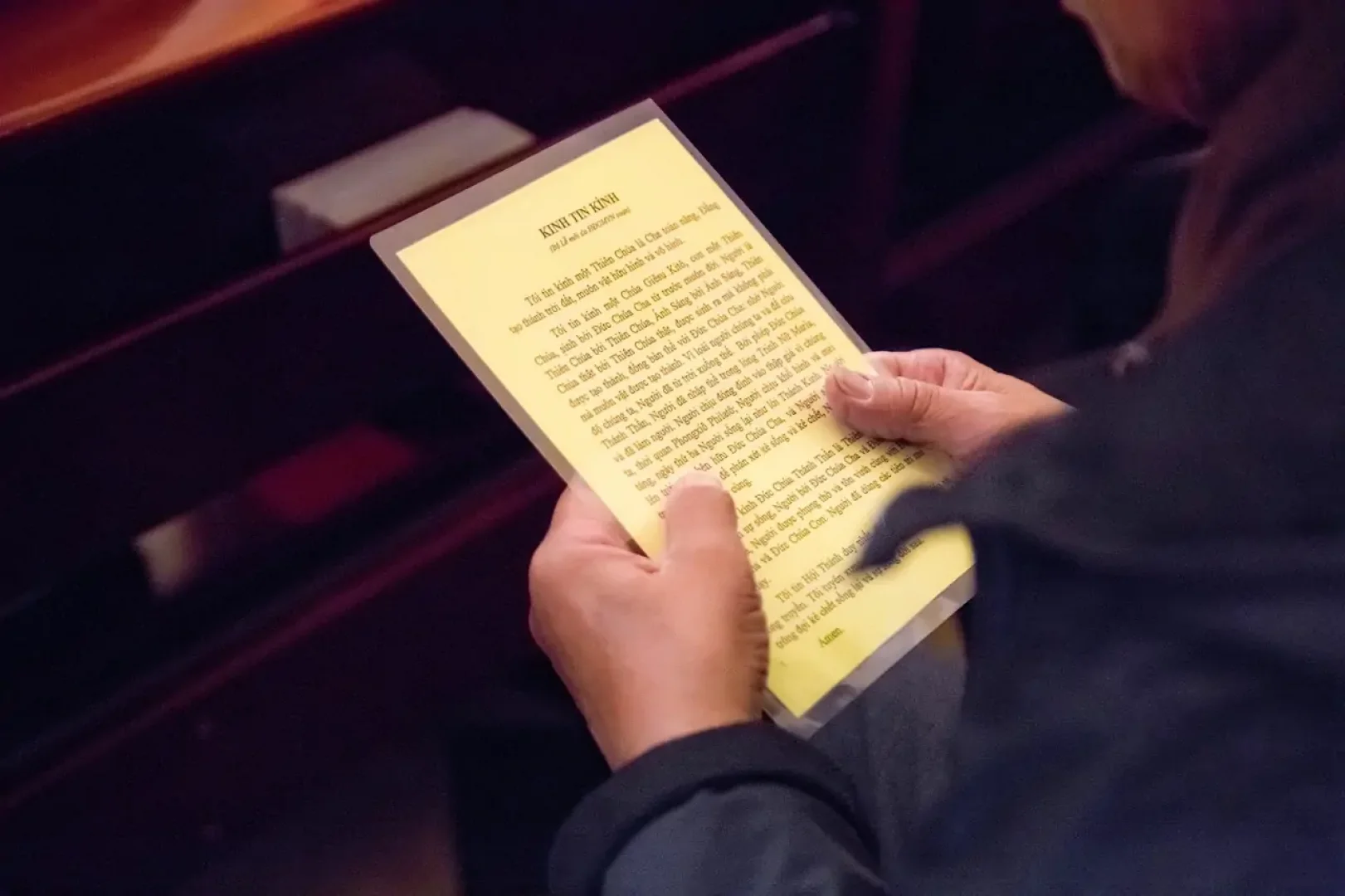 Tiếp đó, cha mẹ đỡ đầu đặt tay trên vai dự tòng khi họ tiến lên xưng tên thánh và lãnh nhận Kinh Tin Kính, Kinh Lạy Cha. Cha chủ sự dâng lời tạ ơn và cộng đoàn đáp: “Tạ ơn Chúa”. Bầu khí nhà thờ tràn đầy niềm vui hiệp thông. Toàn thể cộng đoàn cùng tuyên xưng Kinh Tin Kính như lời khích lệ và nâng đỡ đức tin cho các dự tòng.