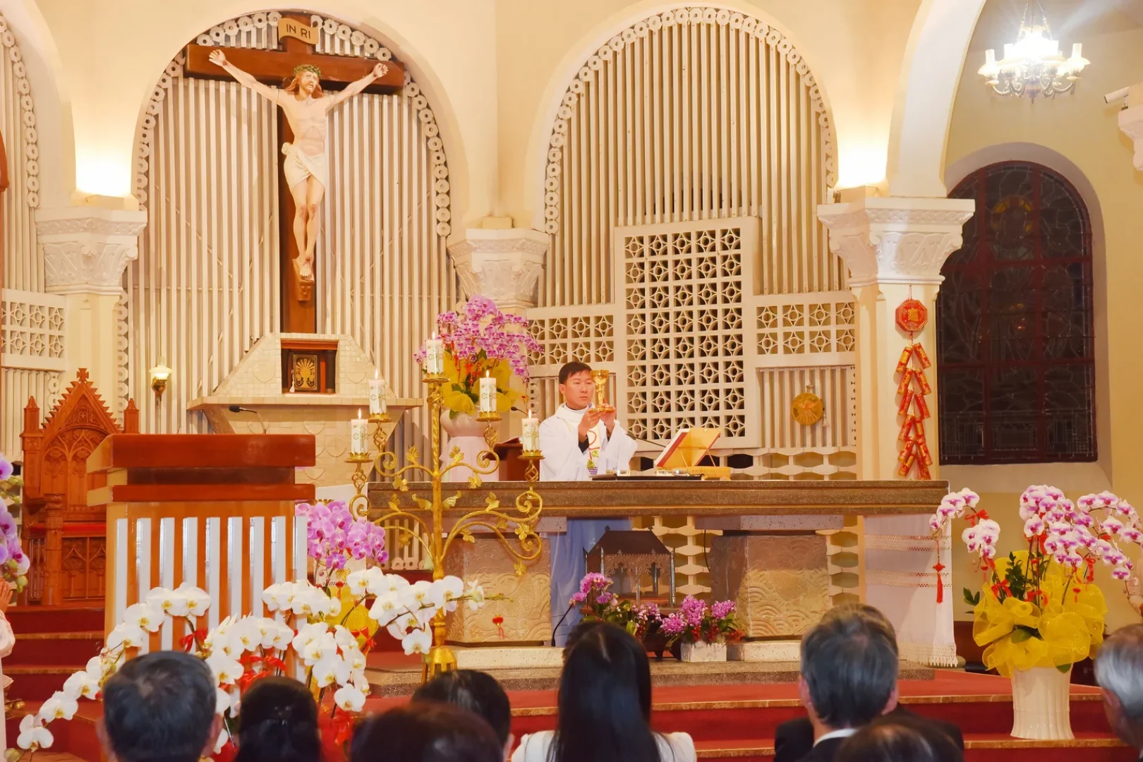 Giữa tiết trời se lạnh đặc trưng của phố núi những ngày đầu xuân, bầu khí thánh đường càng trở nên linh thiêng và ấm áp. Thánh lễ do Cha phó Giuse Lê Vũ Thành Trung chủ tế, với sự hiện diện hiệp thông của quý tu sĩ nam nữ và đông đảo cộng đoàn phụng vụ.