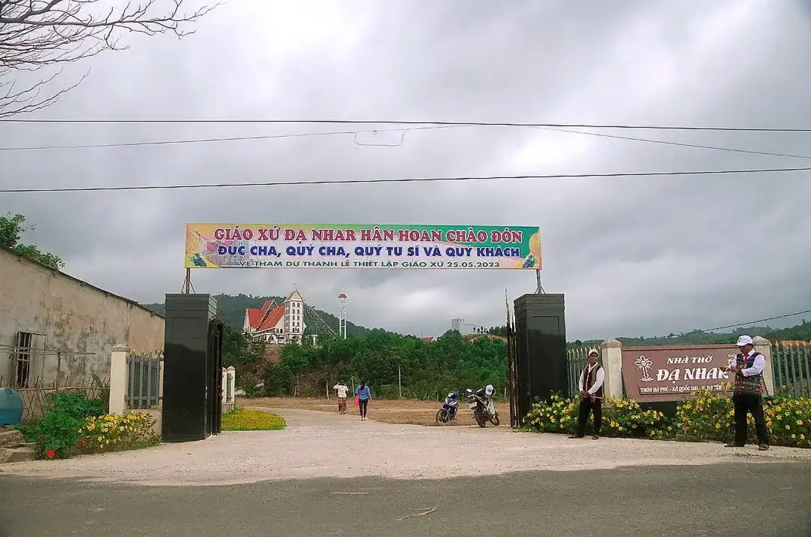 Mặc dù trời bất ngờ đổ mưa rất to ngay khi bắt đầu Thánh Lễ, nhưng điều đó cũng không thể ngăn cản sự hiện diện của rất đông các cha đồng tế cũng như của bà con giáo dân từ khắp nơi tuôn đến. Đức Cha Đaminh đã rất xúc động khi nói về điều đó. “Chẳng có lý do nào khác ngoài Đức tin, tinh thần Phụng vụ và Đức bác ái đã quy tụ mọi người về đây trong Thánh lễ này. Tôi tạ ơn Chúa vì điều đó. Đó chính là 3 yếu tố thiết yếu để hình thành một cộng đoàn phụng vụ, một giáo xứ mới”. Tiếp theo lời mở đầu của Đức Cha Đaminh, Cha Phaolô vũ Đức Vượng – Quản hạt Madagoui công bố quyết định thiết lập Giáo xứ mới Đạ Nhar, được tách ra từ Giáo xứ mẹ Đạ Tẻh, rồi đến nghi thức trao chìa khóa nhà thờ cho Cha tân Quản xứ.