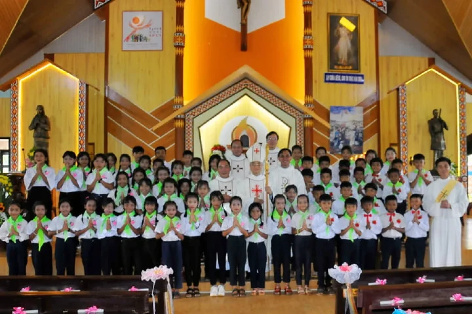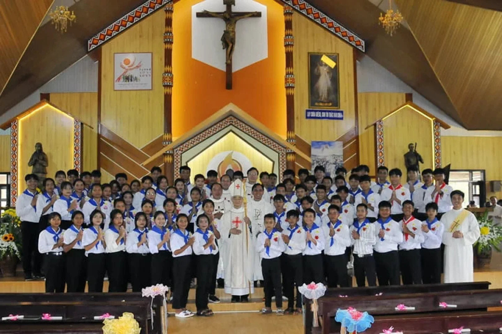 Vào lúc 9g30 sáng thứ Bảy 06/08/2022, ngày lễ Chúa Hiển Dung, Đức Cha Đaminh Nguyễn Văn Mạnh, Giám mục Giáo phận đã về Giáo xứ Đồng Nai Thượng, ban Bí tích Thêm Sức cho 72 em thiếu nhi trong Giáo xứ. Cả cộng đoàn giáo xứ đã tập trung từ rất sớm để cùng với Cha Quản xứ Antôn Nguyễn Công Hiến và quý Thầy đón Đức Cha.