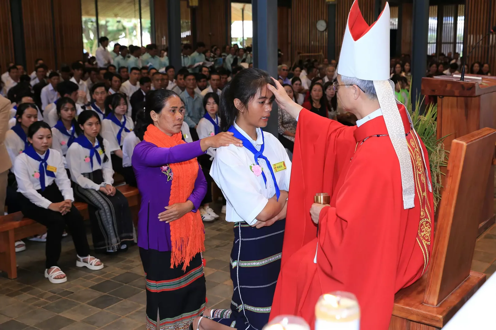 Sau phép lành trọng thể, một em đại diện dâng lời tạ ơn Chúa, cảm ơn Đức cha, quý Cha, quý Tu sĩ nam nữ, Ban Hành giáo, thầy cô Giáo lý viên, bố mẹ, cùng bố mẹ đỡ đầu.