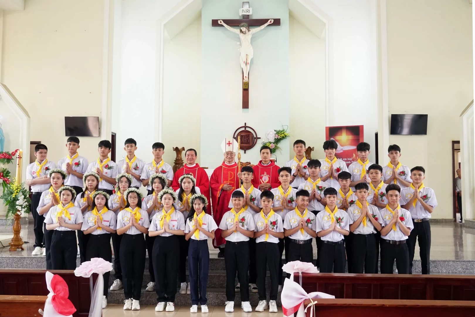 Sáng Chúa nhật ngày 27/07/2025, Giáo xứ Kim Phát (Đức Trọng) hân hoan chào đón Đức cha Đaminh Nguyễn Văn Mạnh – Giám mục Giáo phận Đà Lạt – về thăm mục vụ và chủ sự Thánh lễ ban Bí tích Thêm sức cho 31 em thiếu nhi của giáo xứ. Đồng tế với Đức cha có Cha Quản xứ Phêrô Nguyễn Thăng Long và Cha Giuse Nguyễn Kim Công. Tham dự thánh lễ có quý Dì, quý phụ huynh và đông đảo cộng đoàn Dân Chúa để hiệp ý cầu nguyện cho các em.
