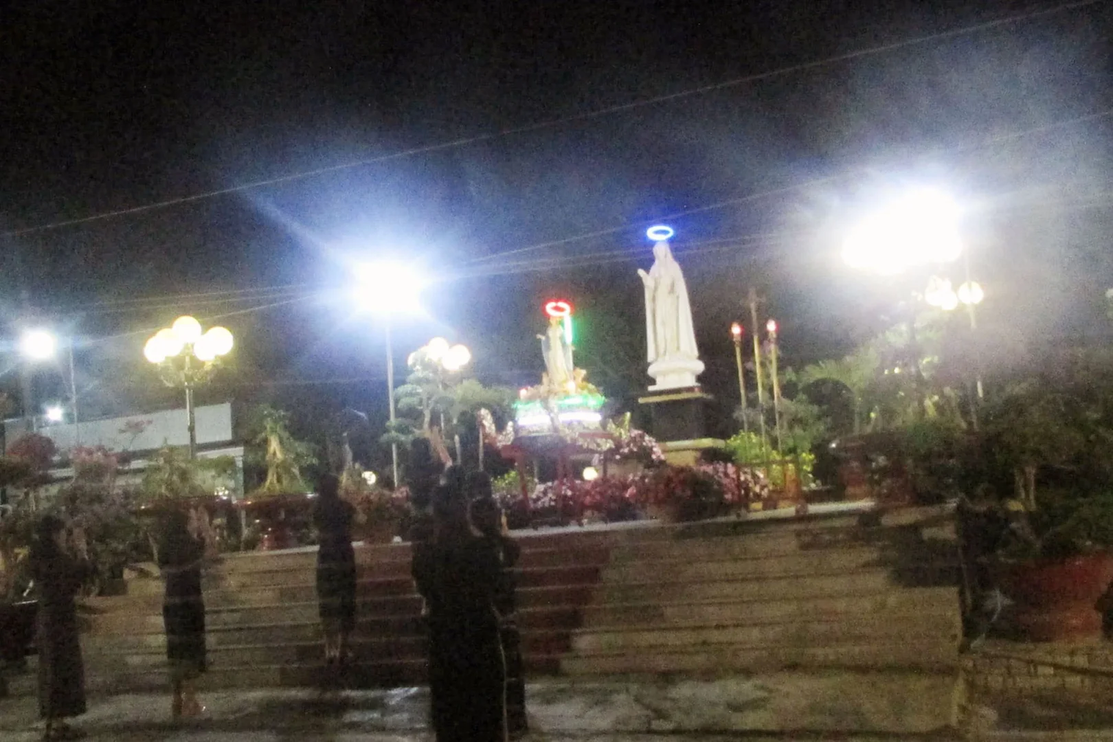 Vào trong nhà thờ Cha Giuse cùng với cộng đoàn sốt sắng dâng lên Mẹ Maria tràng chuỗi Mân Côi với Năm Mầu Nhiệm Thương để tha thiết xin Mẹ cầu cùng Chúa ban hòa bình, chấm dứt chiến tranh trên toàn thế giới.