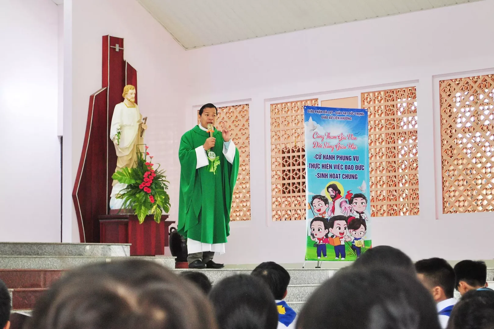 Trong bài giảng, Cha Quản xứ Giuse mời gọi các em thiếu nhi trong năm học giáo lý mới này cùng tham gia vào đời sống Giáo Hội một cách cụ thể qua các việc: Cử hành phụng vụ, thực hiện việc đạo đức, sinh hoạt chung và noi gương bắt chước Chúa Giêsu sống yêu thương mọi người, vâng lời cha mẹ, siêng năng đi lễ và học giáo lý, cũng như biết để ý đến đời sống bên trong tâm hồn mình theo như Lời Chúa trong Tin Mừng hằng ngày.