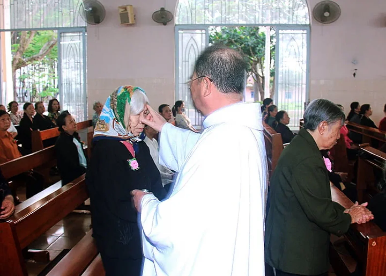 Tiếp theo, trong nghi thức Xức dầu Bệnh nhân, Cha Phó cùng với Cha Quản xứ đã xức dầu cho các bệnh nhân hiện diện.