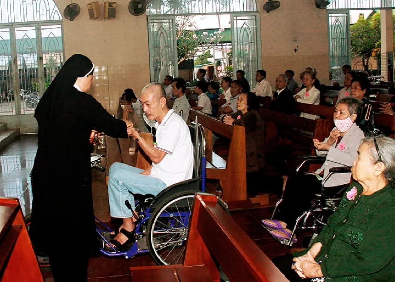 Sau Thánh lễ, các bệnh nhân được nhận các phần quà do giáo xứ gởi đến như một sự động viên chia sẻ…