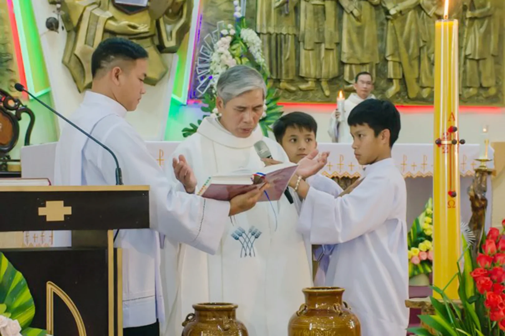Trong tâm tình đón mừng mầu nhiệm Đức Kitô Phục Sinh, Giáo xứ Minh Giáo đã long trọng cử hành thánh lễ đêm Vọng Phục Sinh vào lúc 19h00 thứ bảy. Chủ tế thánh lễ là Cha Giuse Nguyễn Văn Thiên – Quản xứ Minh Giáo, đồng tế với ngài có Cha Giuse Nguyễn Phước Đạt và Cha Vinhsơn Phạm Thanh Phong – Phụ trách và Đồng hành Nhà Huynh Đệ ICM Minh Giáo. Tham dự thánh lễ còn có quý Tu sĩ thuộc hai cộng đoàn Nam – Nữ Tận Hiến tại Minh Giáo, cùng toàn thể cộng đoàn Dân Chúa trong và ngoài giáo xứ.