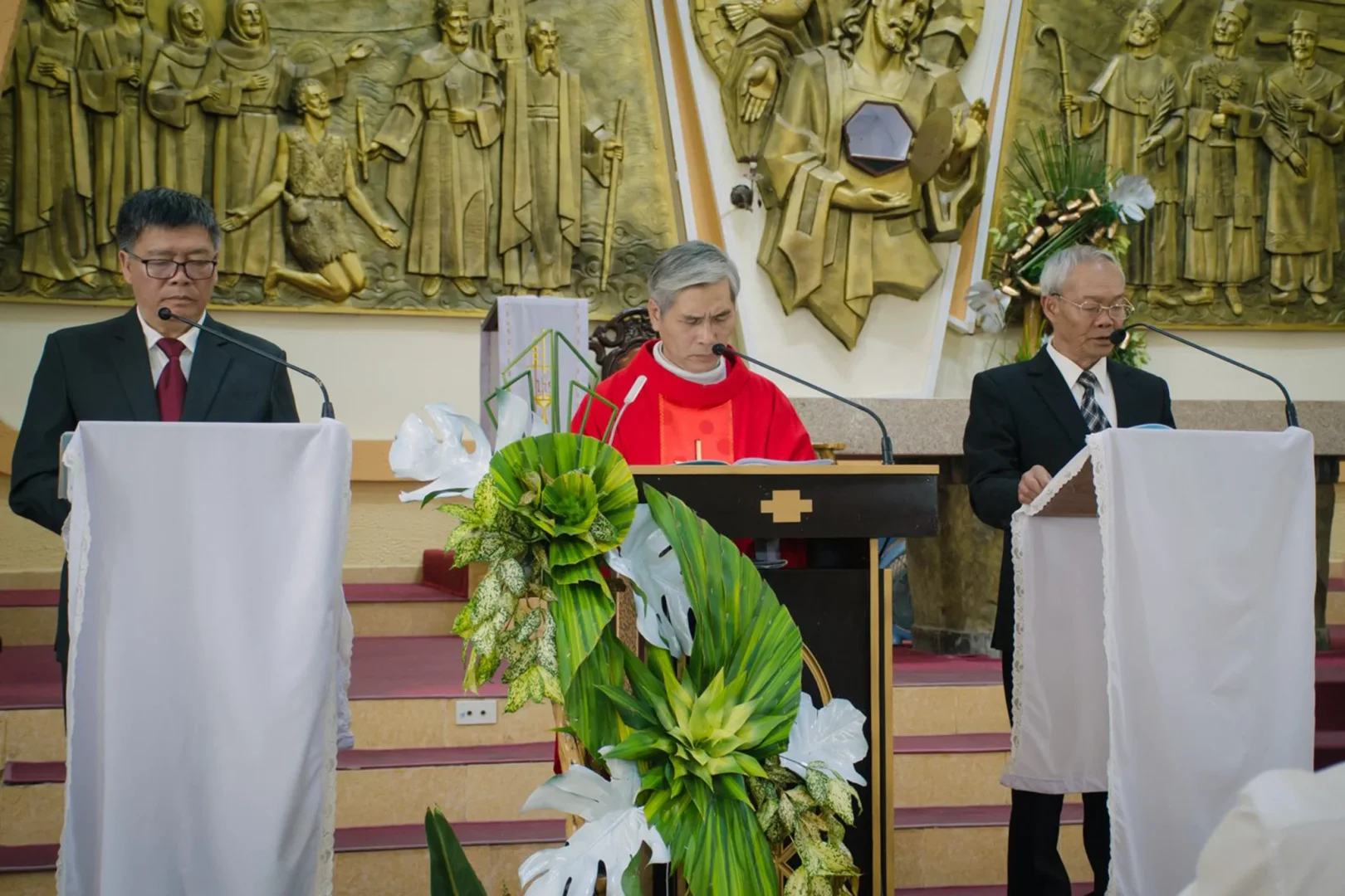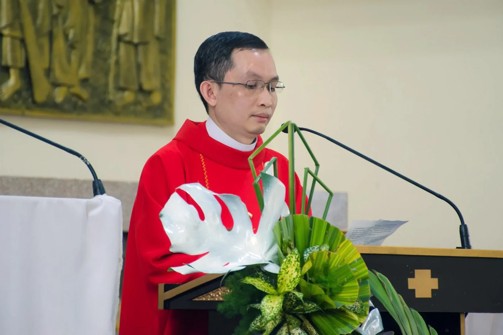 Mở đầu là phần phụng vụ Lời Chúa. Sau bài Thương khó, Cha Vinhsơn đã có những chia sẻ thật sâu sắc với cộng đoàn phụng vụ. Ngày thứ Sáu Tuần Thánh với việc suy tôn Thánh giá, không chỉ là tưởng niệm Chúa Giêsu chịu đau khổ và chịu chết trên thánh giá, mà còn là chiêm ngắm tình yêu vô biên của Chúa, một tình yêu sẵn sàng hiến mạng sống mình, yêu cho đến cùng. Tình yêu đến cùng đó được minh chứng qua dòng máu và nước tuôn trào sau khi Ngài đã tắt thở. Thế nhưng tình yêu cho đến cùng ấy lại nhận về sự phản bội, sự thù ghét, sự dửng dưng… Một Philatô nhu nhược vì sợ mất chức quyền, một Giuđa phản bội đã bán Thầy mình, một đám đông sớm thay lòng đổi dạ vì bị xúi giục. Cha Vinhsơn mời gọi mỗi người trong giây phút hiện tại hãy tự đặt mình dưới chân Thánh giá và xét xem liệu rằng mình có phải là một Philatô không dám sống cho sự thật, một Giuđa ham mê tiền bạc hay là đám đông không sống cho niềm tin của mình? Việc chiêm ngắm tình yêu đến cùng ấy cũng sẽ trở thành dĩ vãng nhạt nhoà nếu mỗi người không “vác thập giá hàng ngày” mà theo Chúa Giêsu. Cha cũng khơi gợi lên những suy tư về việc “vác thập giá”: chấp nhận trong bình an những đau khổ là một phần tất yếu của cuộc sống; chấp nhận những cái “chết khác” trước cái chết thân xác, ví dụ như chết đi sự nóng nảy, sự giận hờn, sự đố kỵ; cuối cùng, tập sống kiên nhẫn và hy vọng vào sự Phục Sinh của Chúa Giê-su.