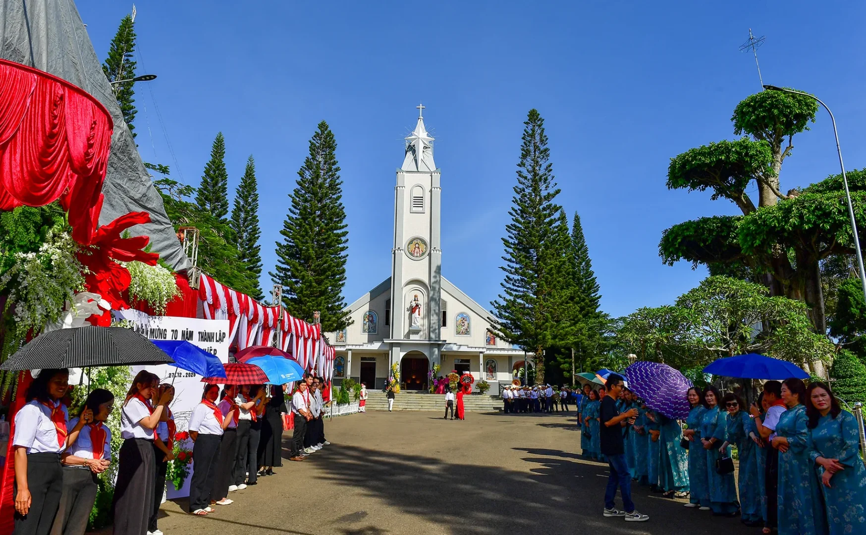 Sáng thứ Bảy ngày 27/12/2025, cộng đoàn Giáo xứ Phú Hiệp tưng bừng rộn rã đón tiếp Đức cha Đaminh – Giám mục Giáo phận, quý Cha, quý Tu sĩ nam nữ và quý khách về giáo xứ hiệp dâng thánh lễ nhân ngày kỷ niệm 70 năm thành lập. Hôm nay cũng là ngày giáo xứ tạ ơn khánh thành công trình trùng tu nhà thờ và mừng bổn mạng của giáo xứ – Thánh Gioan Tông đồ Thánh sử (trước đây là lễ Chúa Kitô Vua). Ba niềm vui lớn lao này được dâng lên Thiên Chúa trong bầu khí hân hoan của mùa Giáng Sinh – Năm Thánh 2025, để cầu cho giáo xứ được triển nở hơn trong Đức Tin và Đức Mến.
