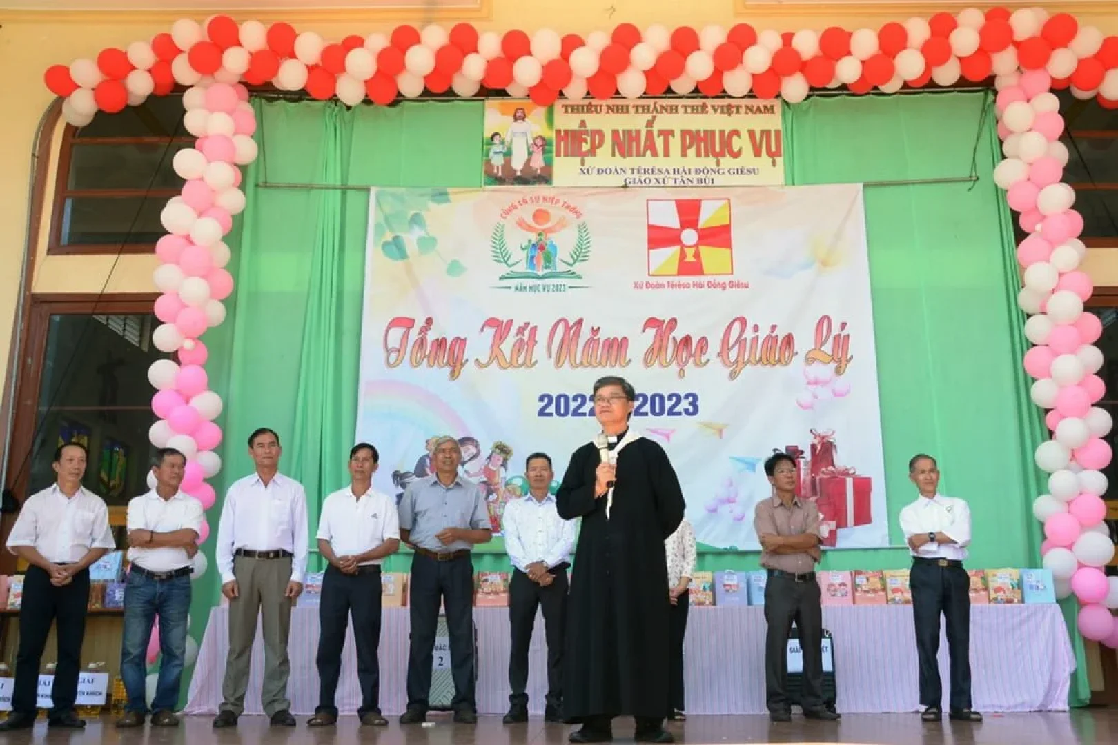 Vào lúc 7h00 ngày 25.6.2023 vừa qua tại Xứ đoàn Têrêsa Hài Đồng Giêsu, Giáo xứ Tân Bùi, Cha Quản xứ Giuse Trần Đức Liêm đã cử hành Thánh lễ Tạ ơn – Tổng kết năm học Giáo lý 2022 – 2023. Trong Thánh lễ có nghi thức thăng ngành cho các em ngành Thiếu Nhi và Nghĩa Sĩ.