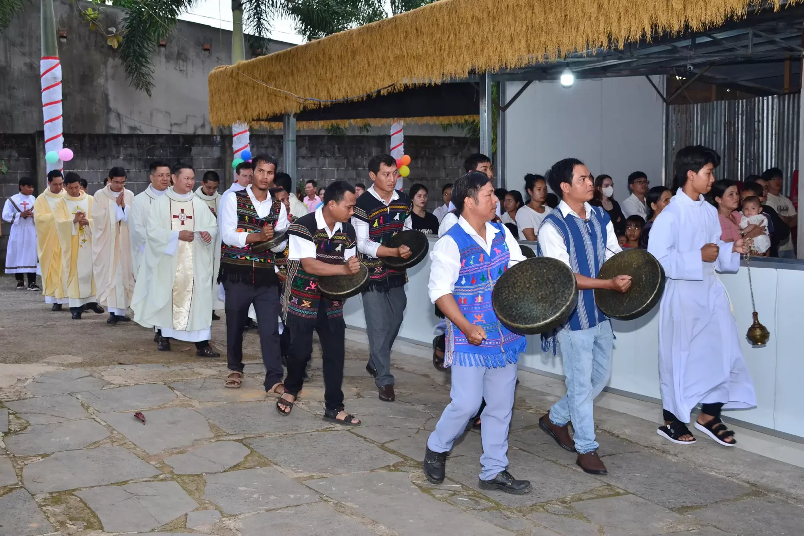 Tiếp nối niềm vui của Thánh lễ tạ ơn, quý Cha, quí Tu sĩ cùng với cộng đoàn giáo xứ tham dự liên hoan bên đống lửa hồng, với những bài ca điệu múa cùng những đặc sản vùng rừng núi cao nguyên.