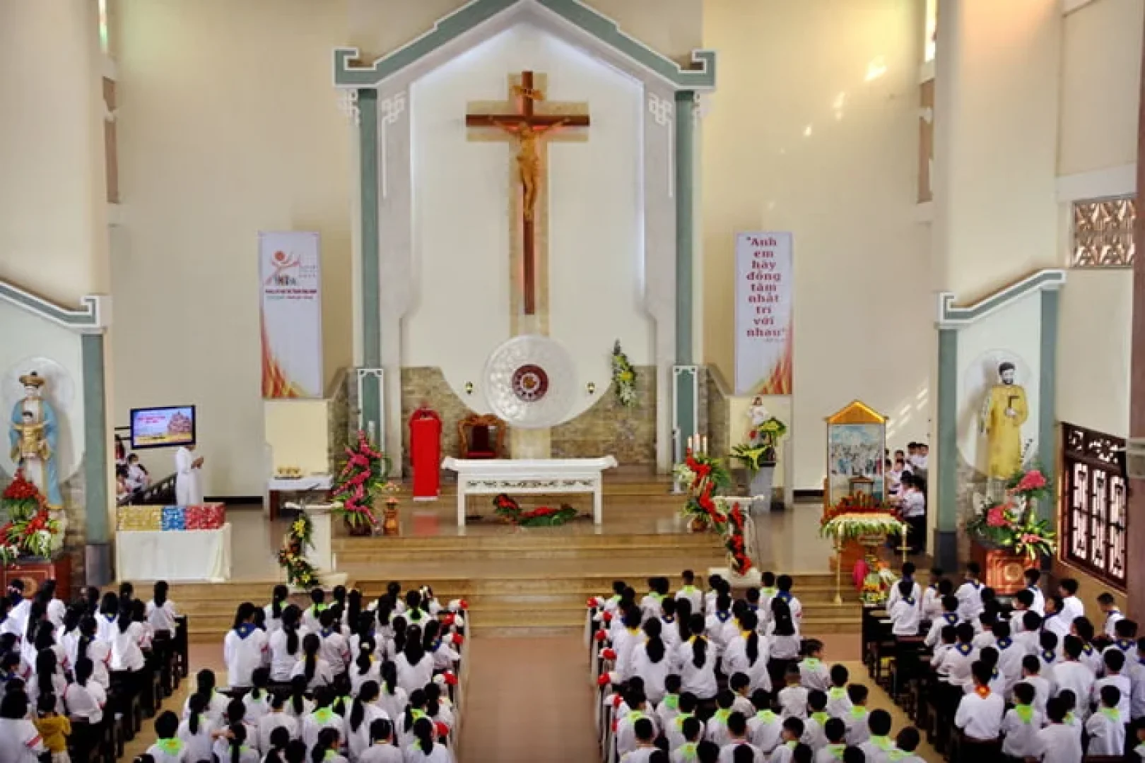 Vào lúc 7h30 Chúa Nhật 13/11/2022, Lễ Các Thánh Tử Đạo Việt Nam, tại Giáo xứ Thánh Tâm – Lộc Tiến, Cha Quản xứ Phaolô Dương Công Hồ đã dâng Thánh lễ Tạ ơn , tổng kết năm học giáo lý 2022.