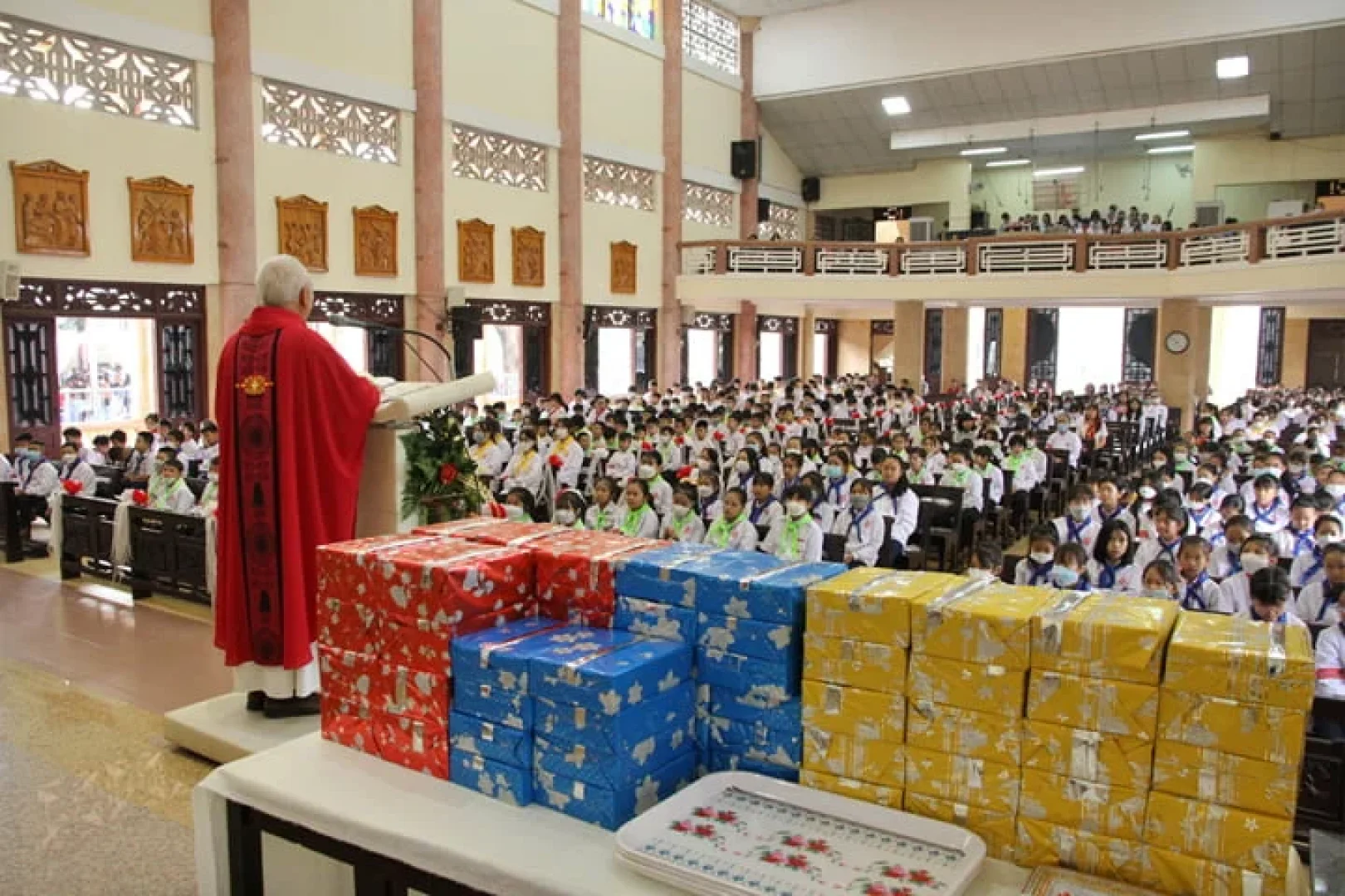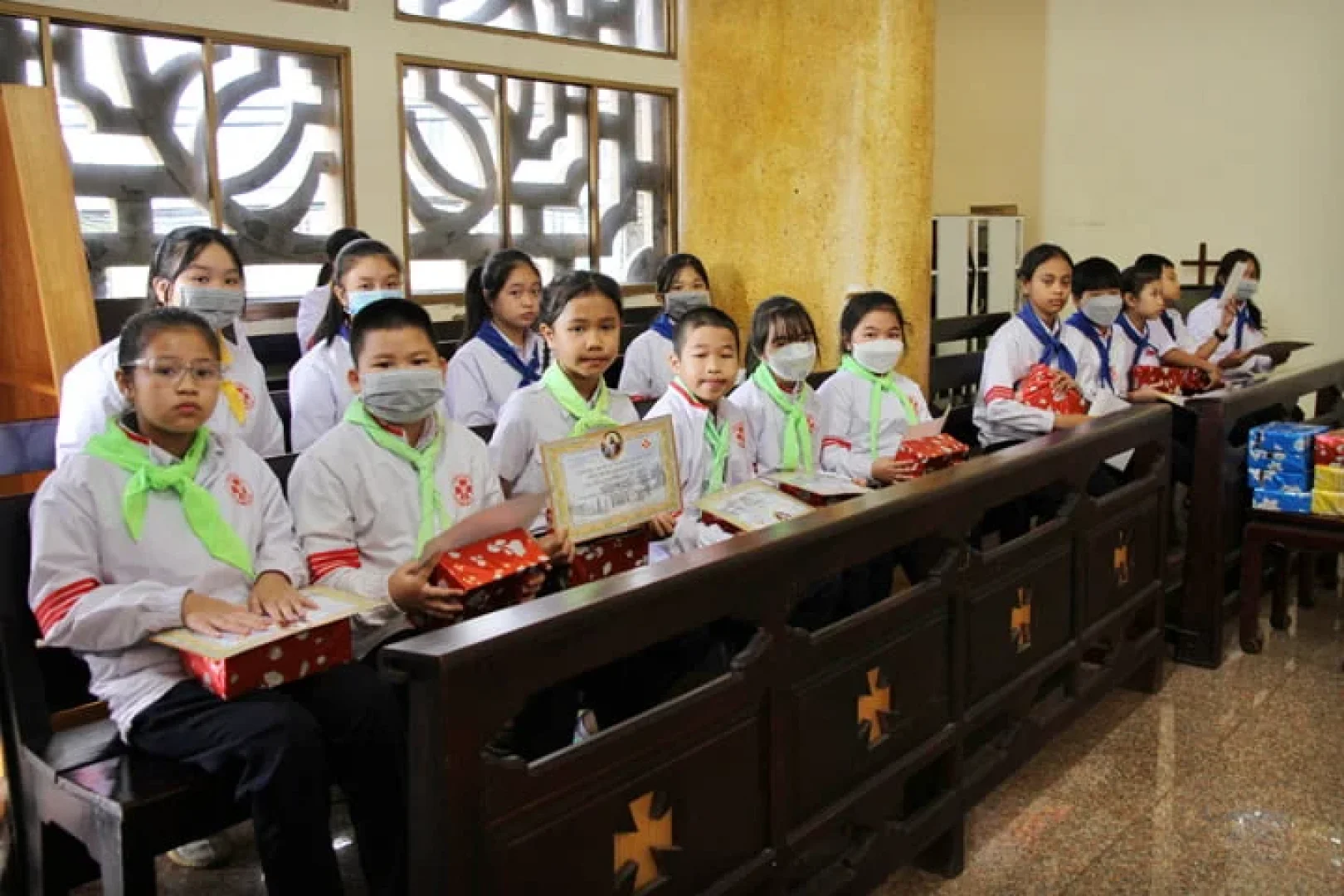 Sau đó là phần phát thưởng. Có 60 em được xét là đã nỗ lực xuất sắc trong việc học giáo lý và siêng năng tham dự Thánh lễ. Đây là sự khích lệ giành cho những cố gắng của các em đoàn sinh. Mong sao quý phụ huynh sẽ dành mọi sự quan tâm cho con em mình, để các em được lớn mạnh trong đức tin.