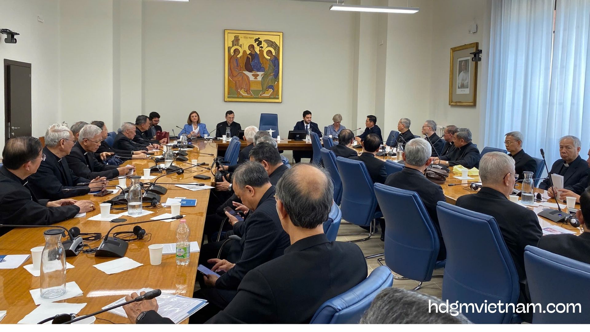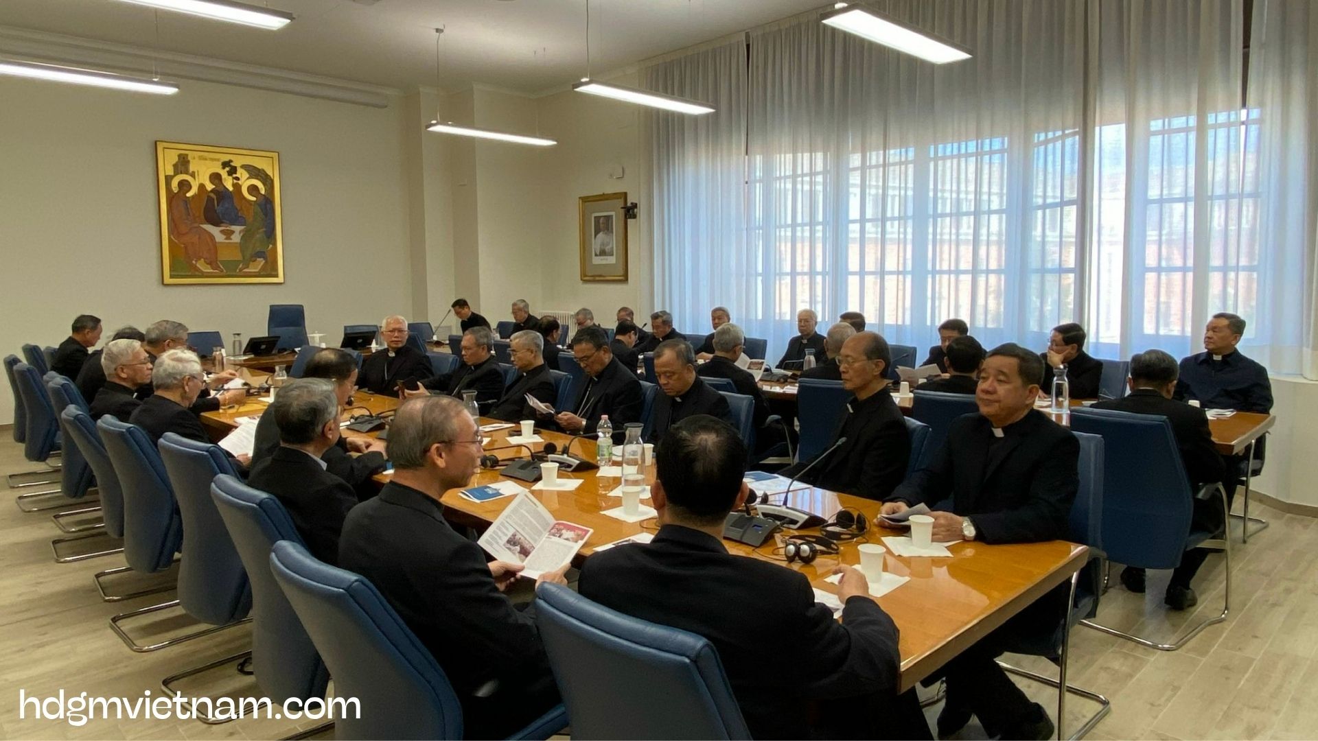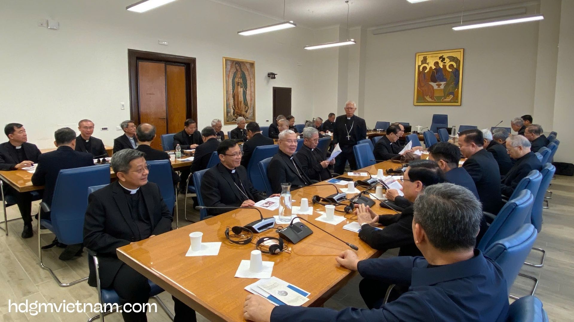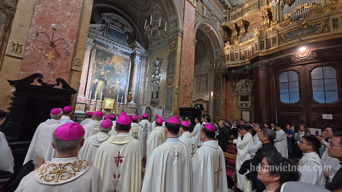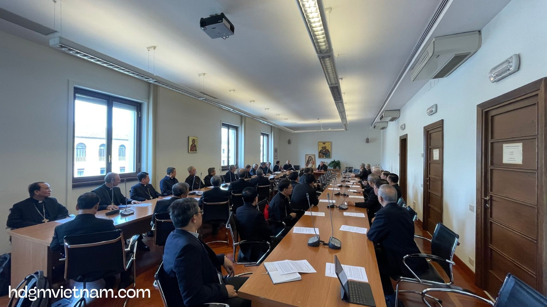 WHĐ (22/4/2026) – Thứ Ba, ngày 21/4/2026, Hội đồng Giám mục Việt Nam (HĐGMVN) tiếp tục ngày thứ 2 hành trình Ad Limina Apostolorum bằng việc viếng thăm Bộ Giáo dân, Gia đình và Sự sống; Bộ Phát triển Con người toàn diện; Bộ Cổ võ Hiệp nhất Kitô hữu; và dâng thánh lễ cầu nguyện cho Đấng đáng kính Đức Hồng y Phanxicô Xaviê Nguyễn Văn Thuận tại nhà thờ Santa Maria della Scala.
